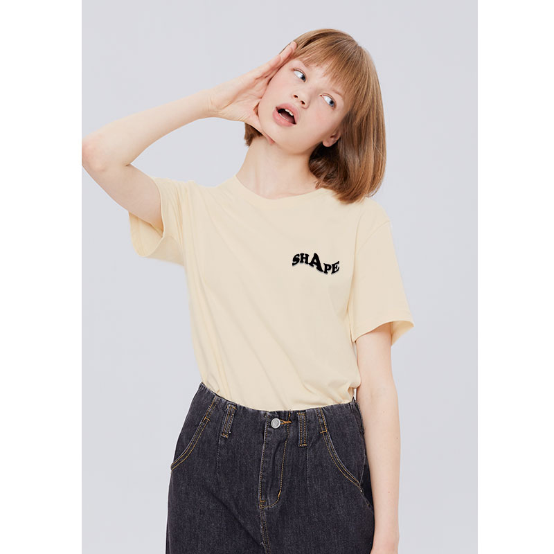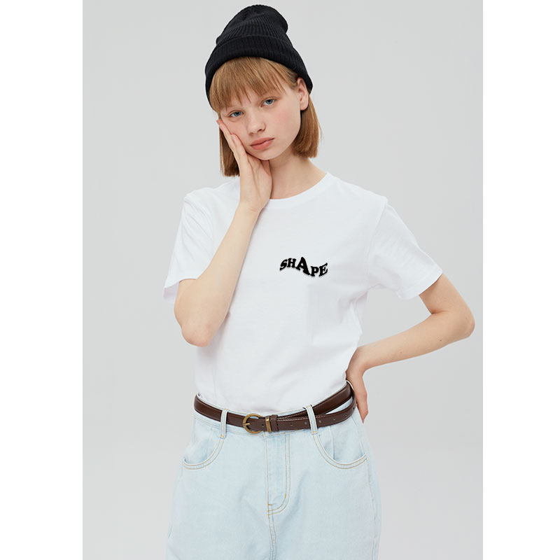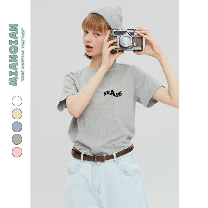 棉牵美潮简约字母百搭灰色正肩短袖t恤女纯棉宽松显瘦半袖上衣夏