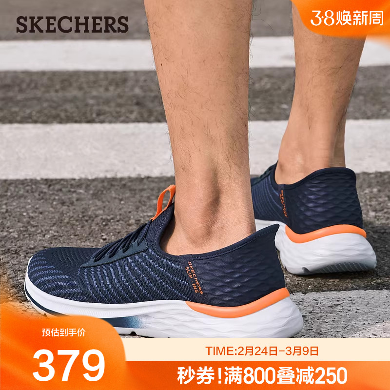 Skechers斯凯奇闪穿鞋春季男鞋运动休闲鞋一脚蹬网面健步鞋