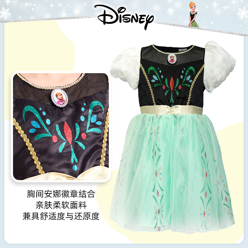 迪士尼女童安娜公主裙梦幻纱裙夏