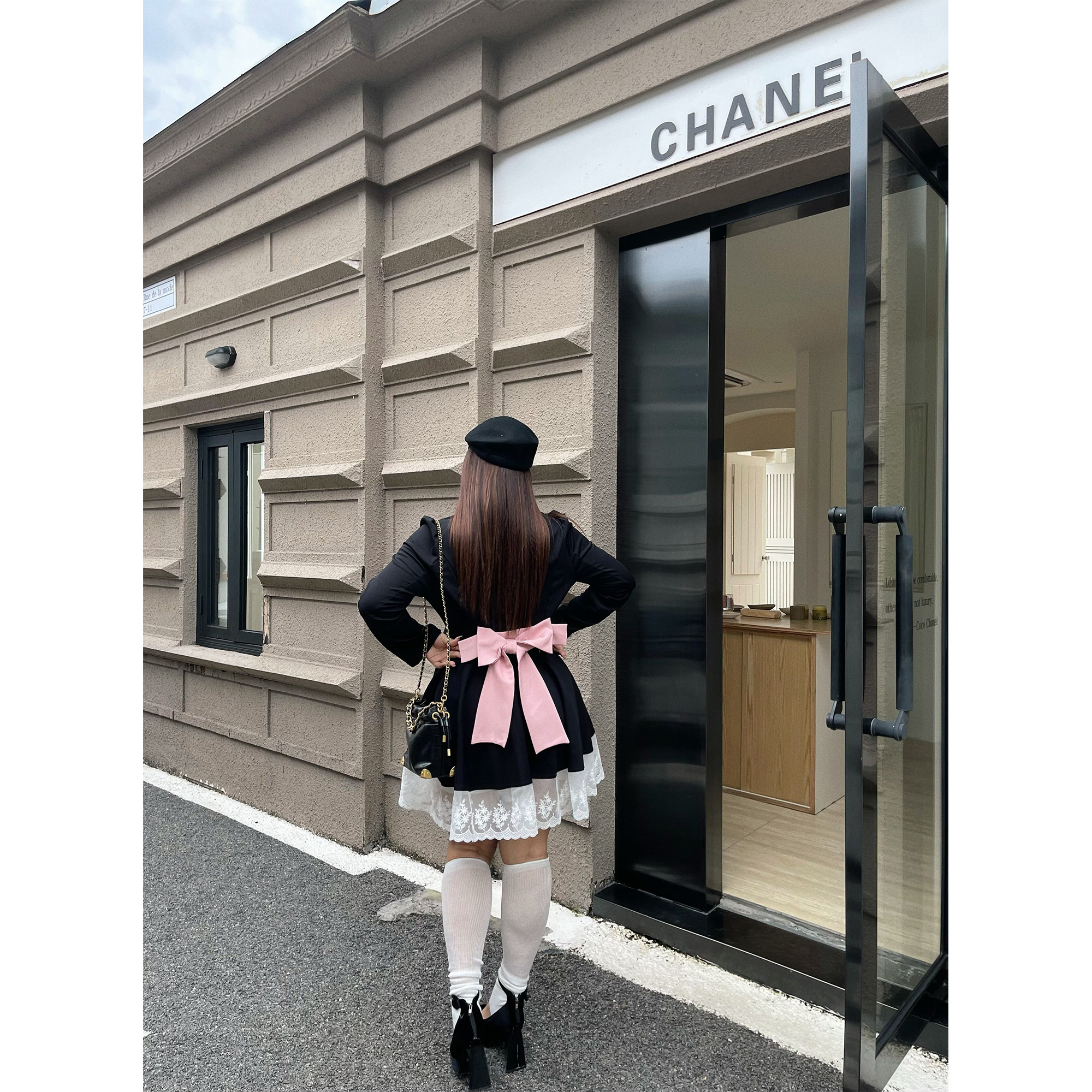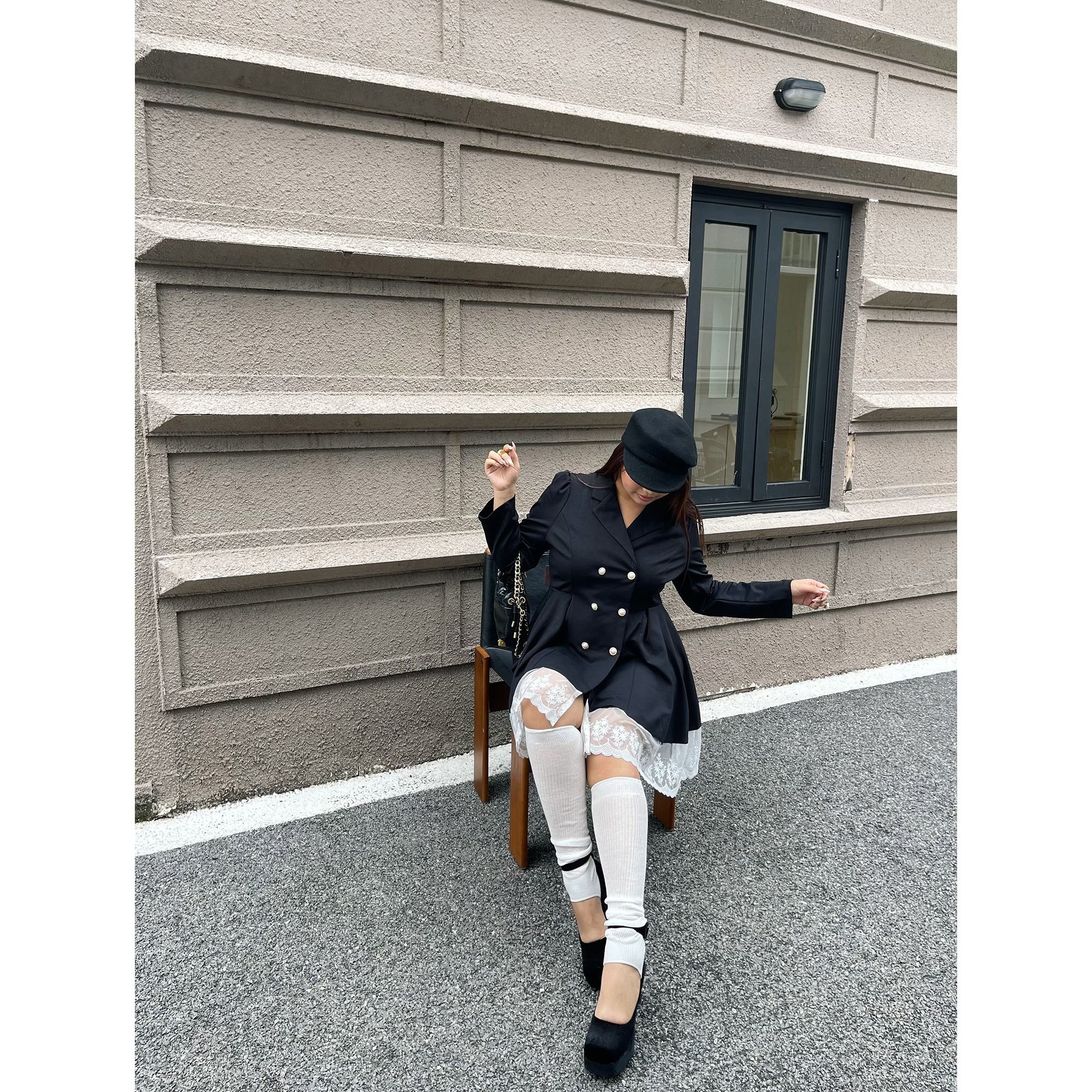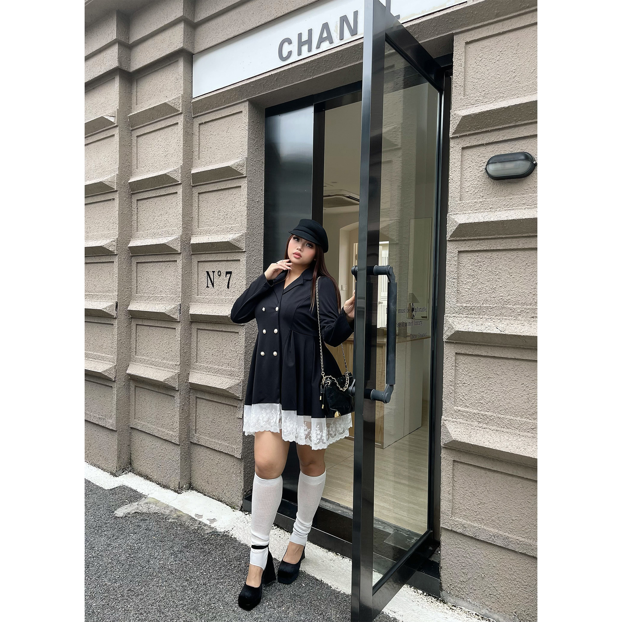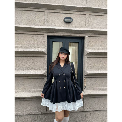 楠哥微胖mm甜辣学院风西装连衣裙女秋大码时尚气质收腰显瘦衬衫裙