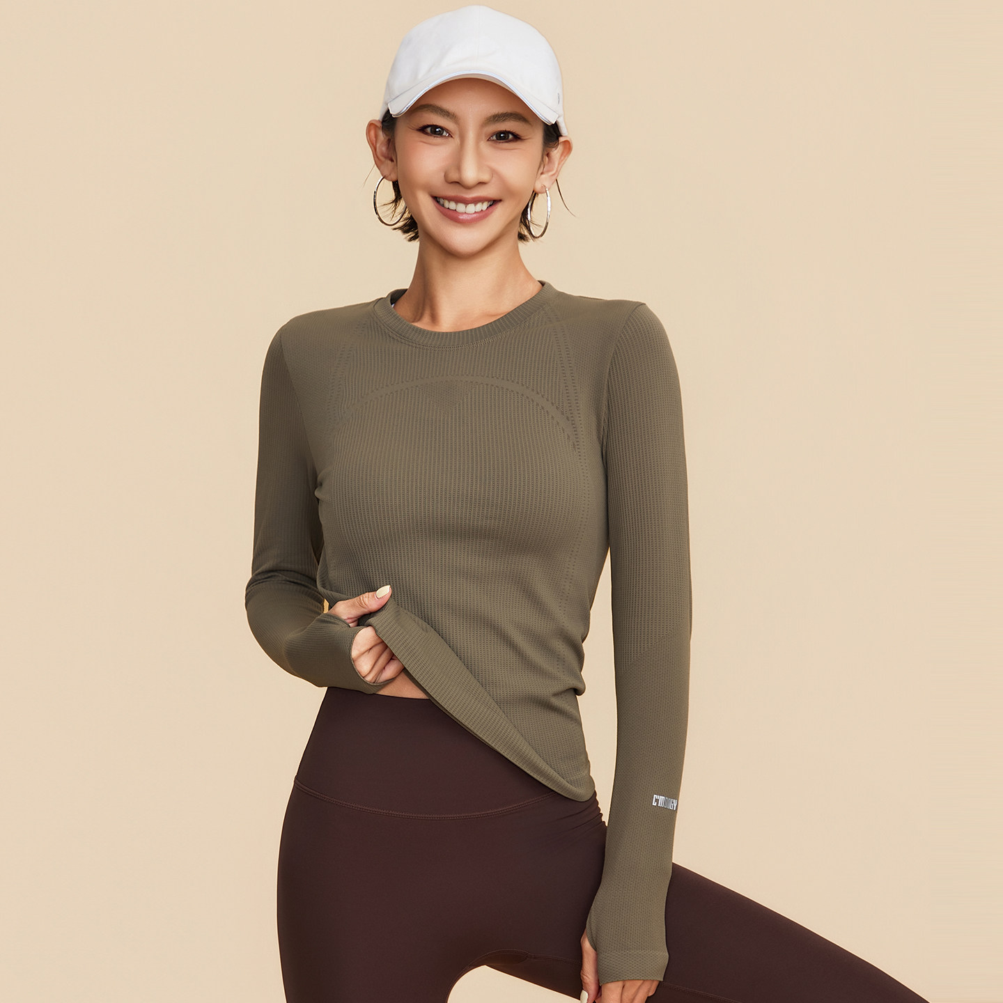 ANNERUN小细格修身圆领健身服