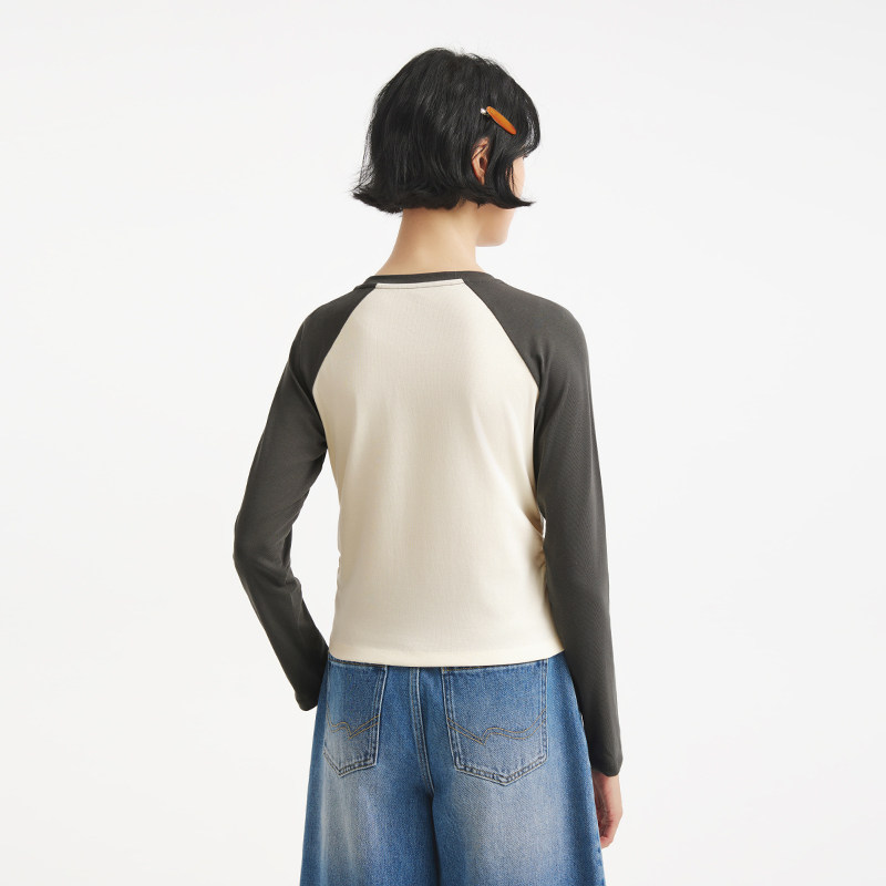 热风2025年女士收腰插肩长袖T