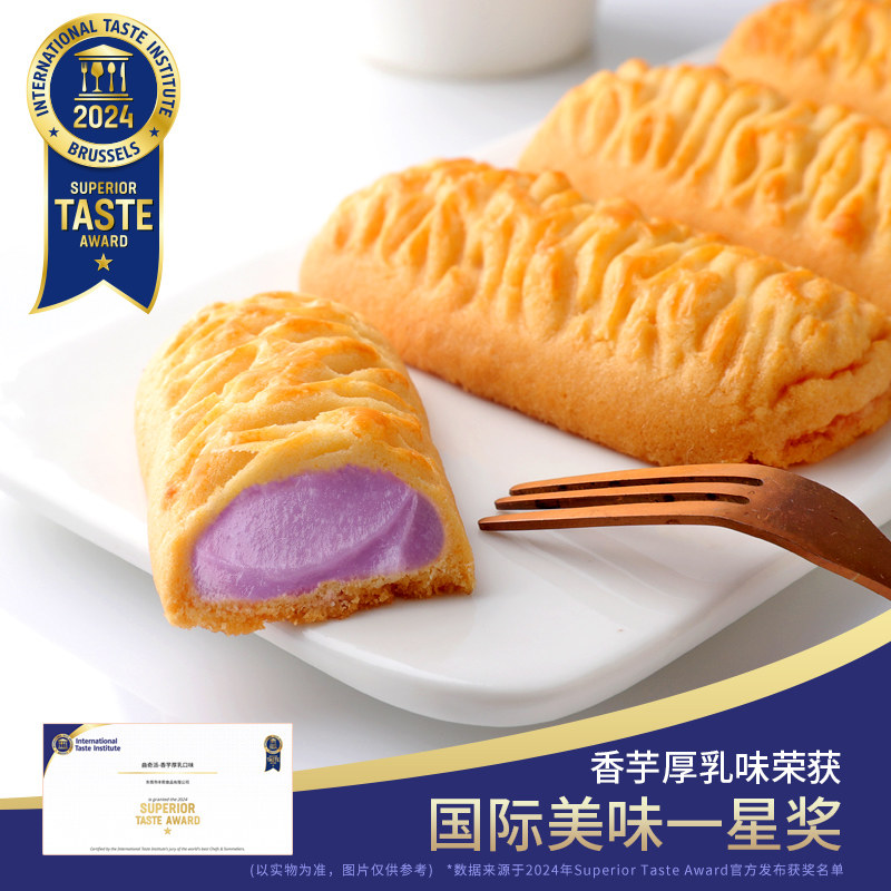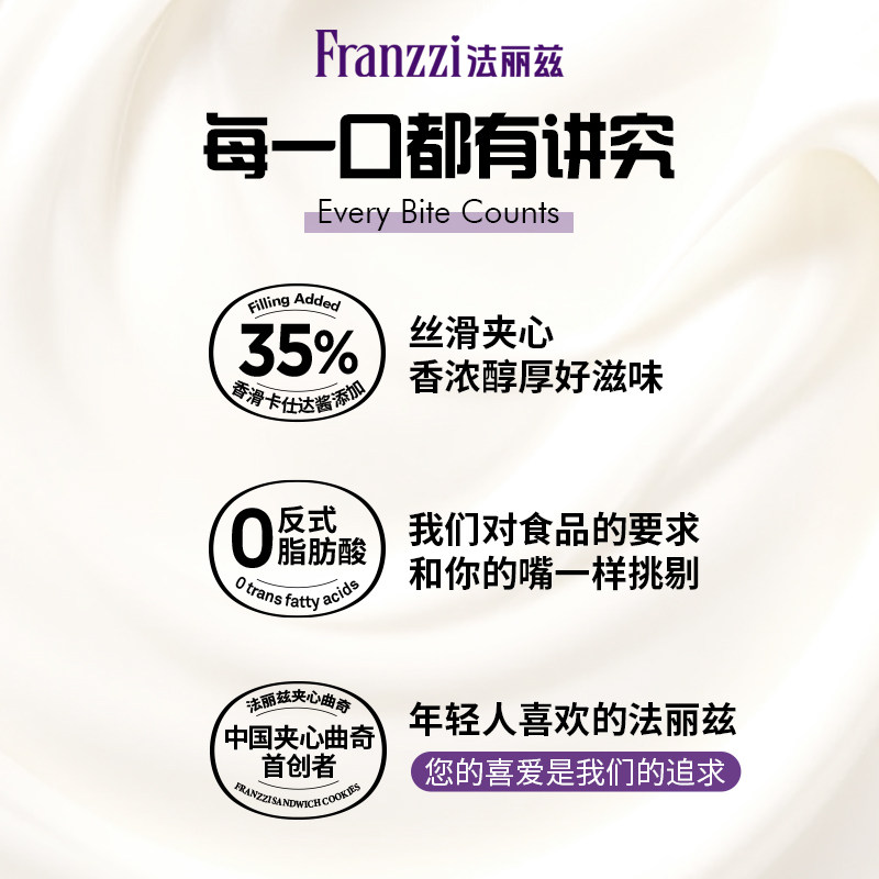 法丽兹卡仕达酱夹心曲奇派100g*5香芋牛乳草莓味零食小饼干下午茶
