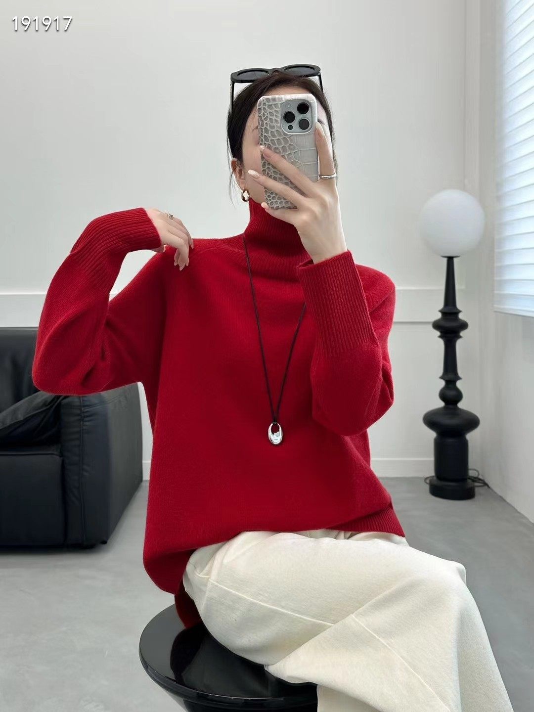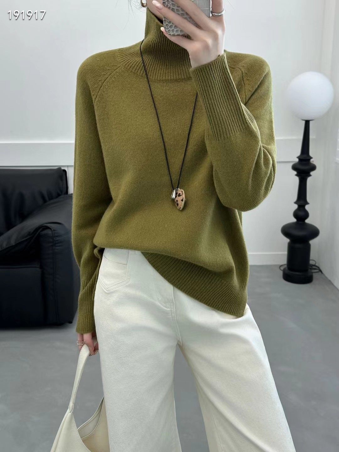 欧洲站2025秋冬新款高领100%羊毛衫女宽松显瘦针织打底衫毛衣