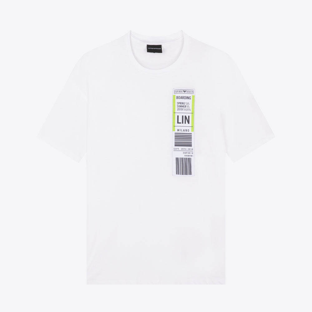 EMPORIO ARMANI阿玛尼春夏男士印花圆领T恤衫短袖T恤银泰 301604