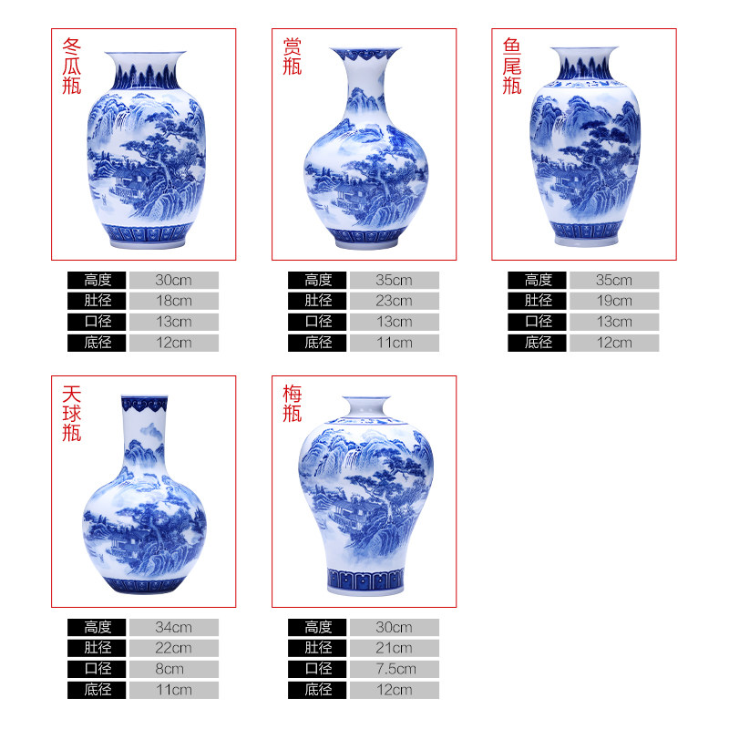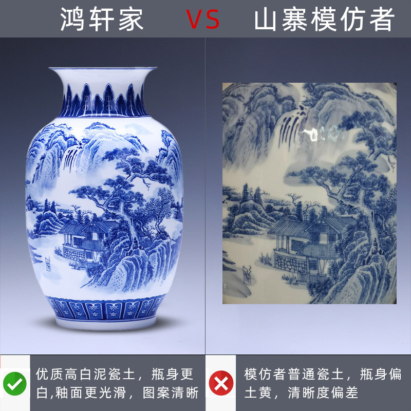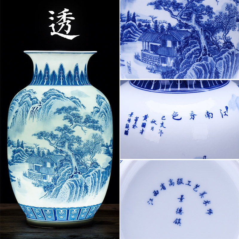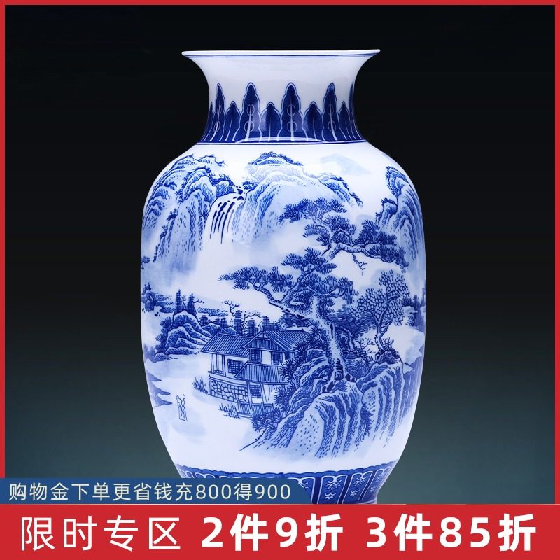 景德镇陶瓷器青花瓷花瓶摆件山水薄胎瓷瓶子中式客厅插花家居饰品