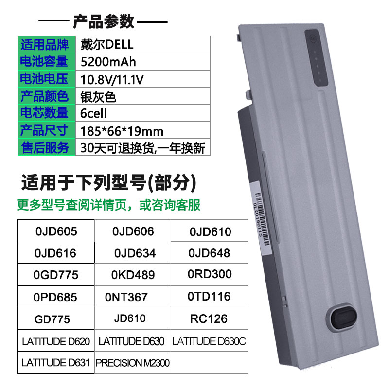 通用DELL戴尔D620 D630 M2 PC764 JD648 PP18L笔记本电脑电池