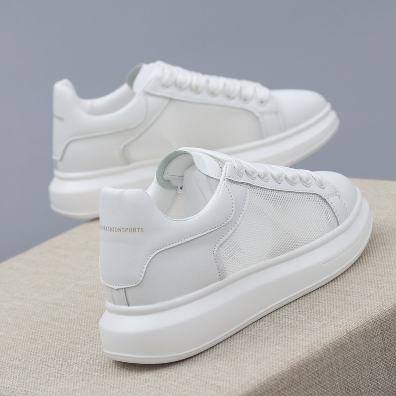 小白鞋男夏季透气休闲鞋2025新款时尚内增高男鞋厚底潮流男板鞋