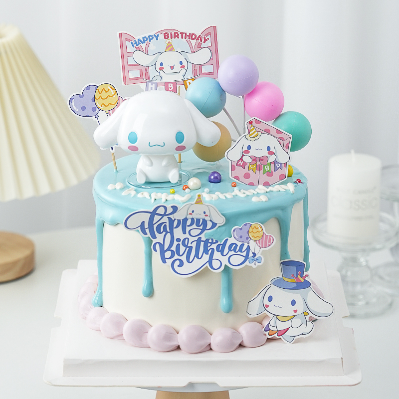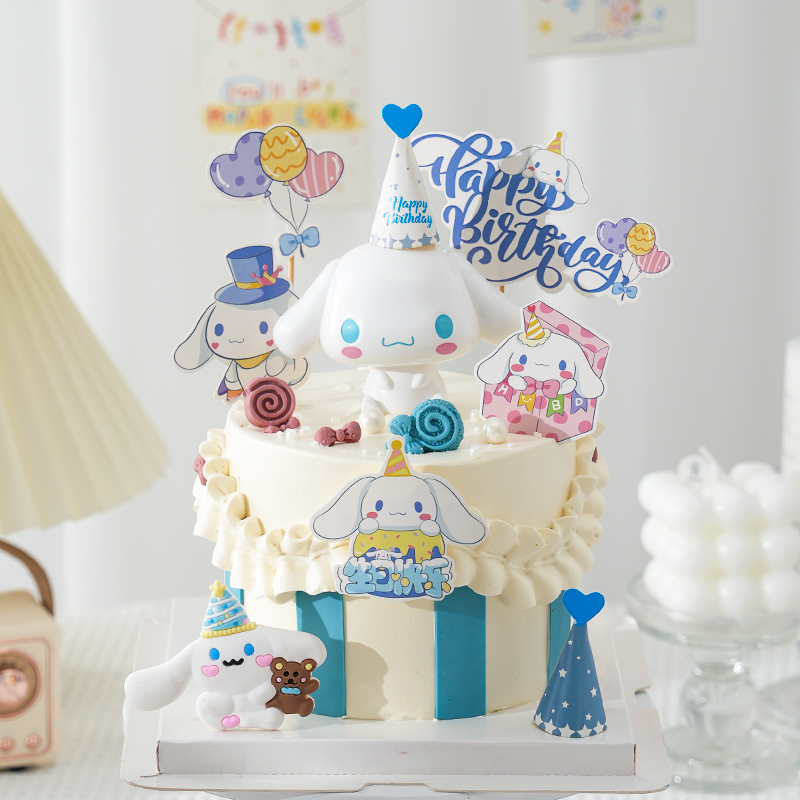 卡通玉桂狗大耳狗女孩生日蛋糕装饰创意周岁甜品台派对插牌插件m