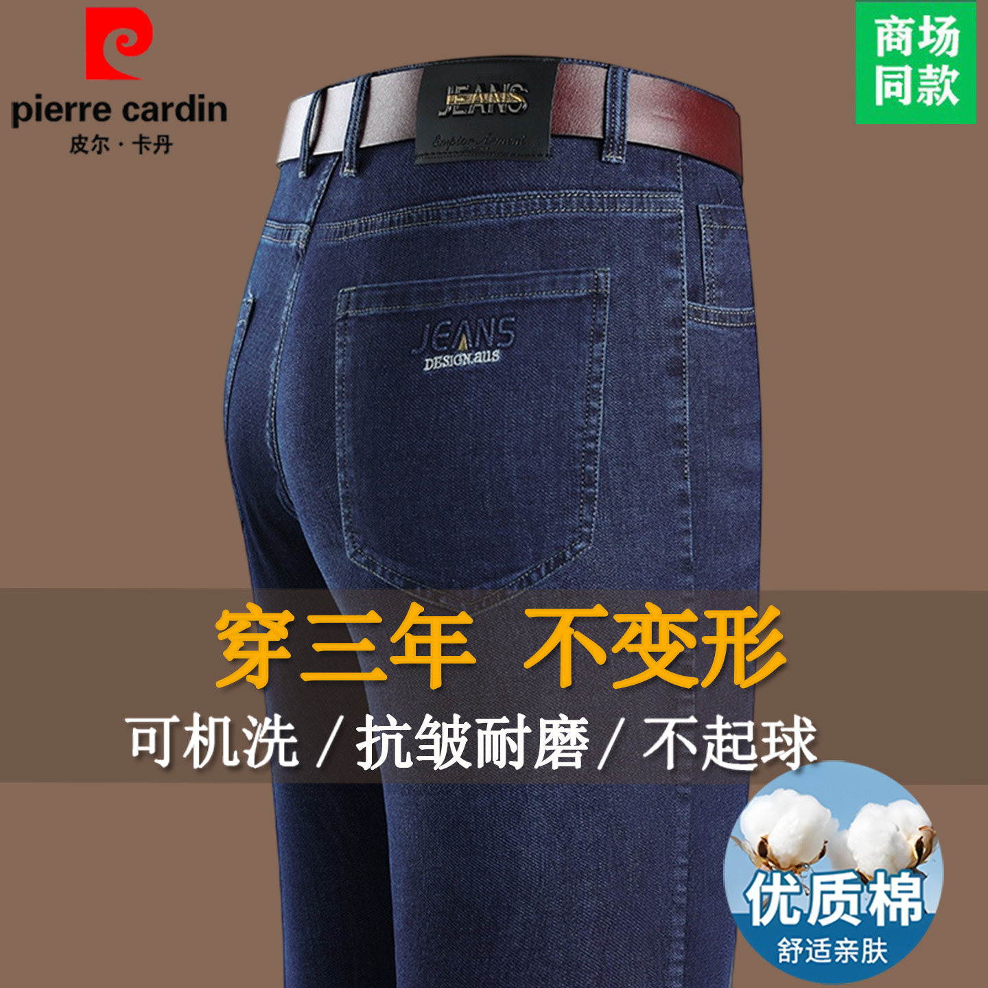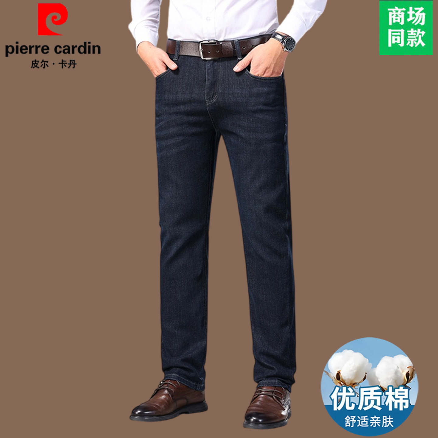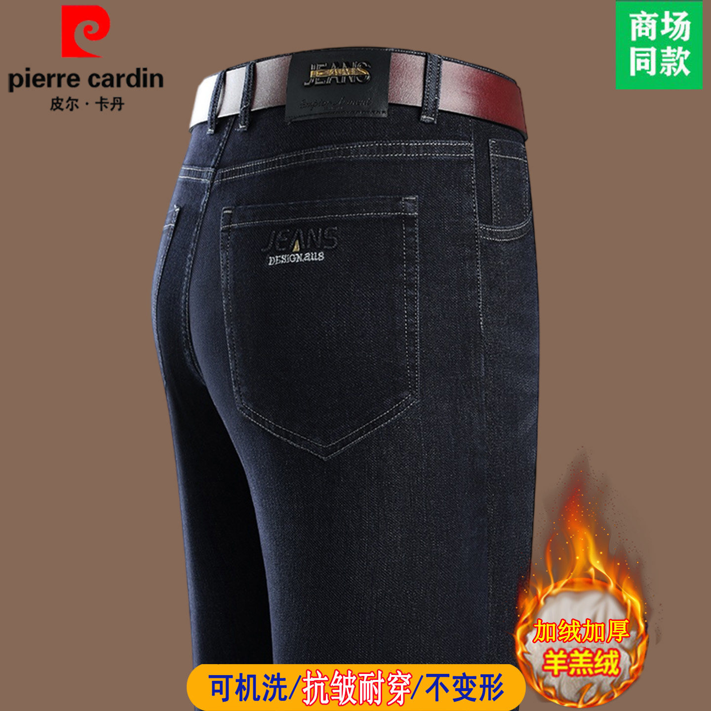 皮尔卡丹高端加绒加厚牛仔裤男秋冬宽松直筒男裤羊羔绒厚保暖长裤