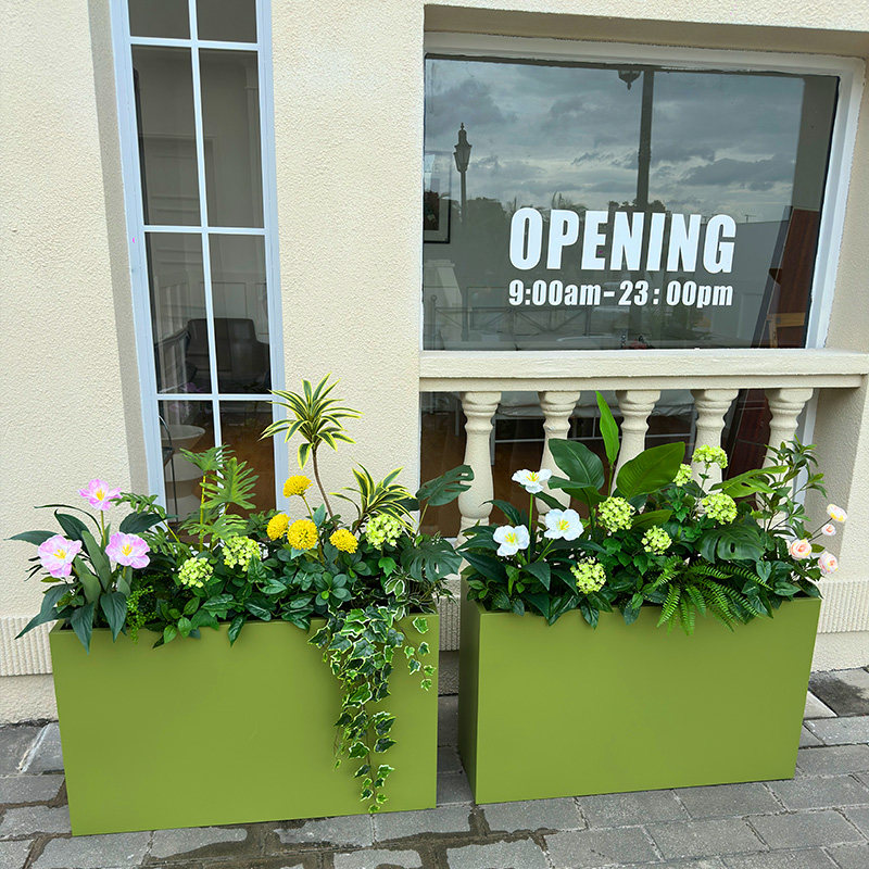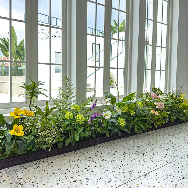 wo+仿真百合竹绣球郁金香龟背花箱景观搭配奶茶店餐饮店软装隔断