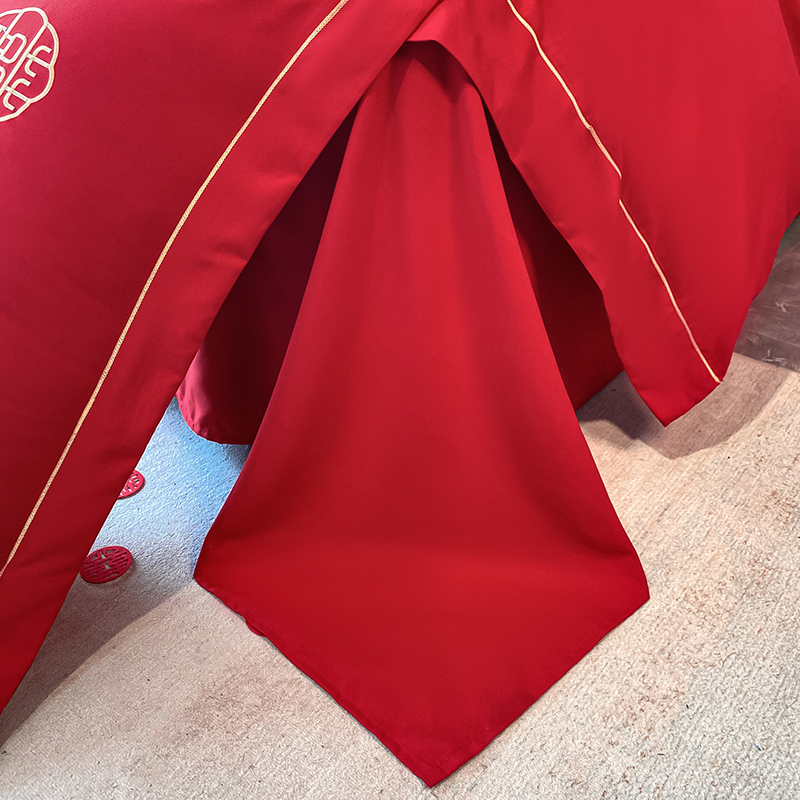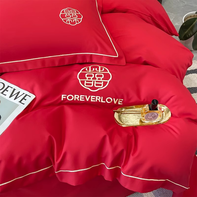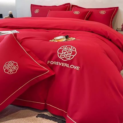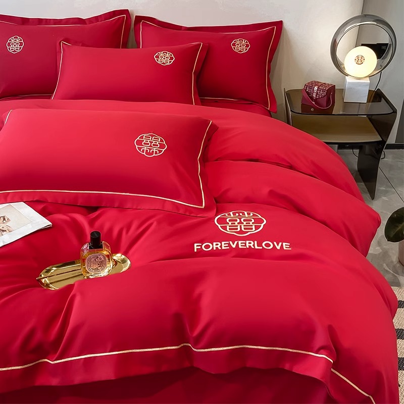 红豆高档结婚床上用品四件套婚庆婚房高级感床单被套红色婚礼被罩