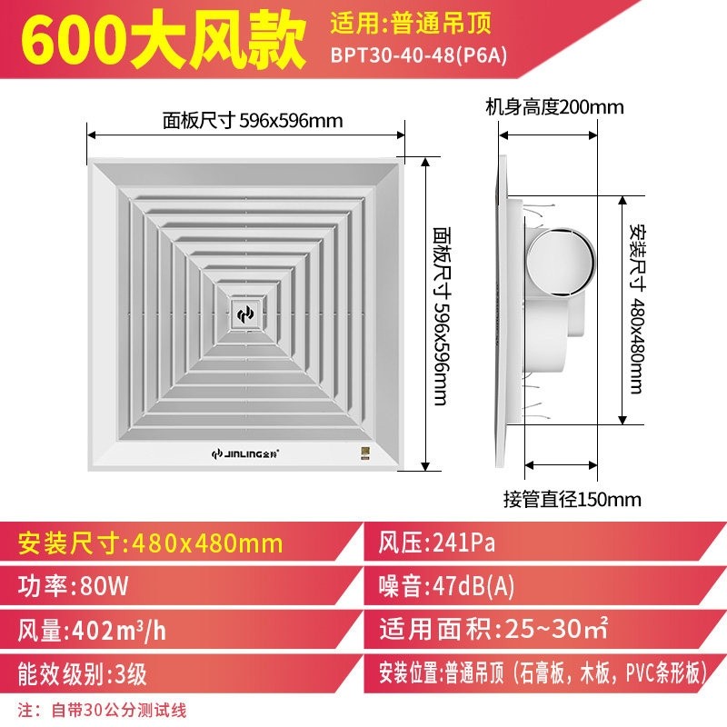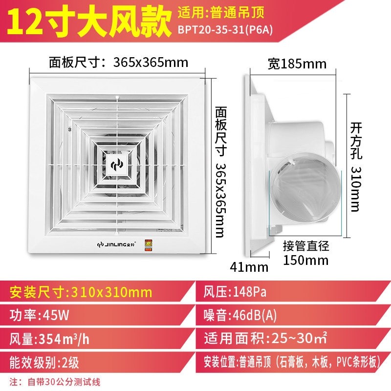 金羚卫生间排风扇吸顶式排气扇石气扇强力静音大风量款膏板吊顶换