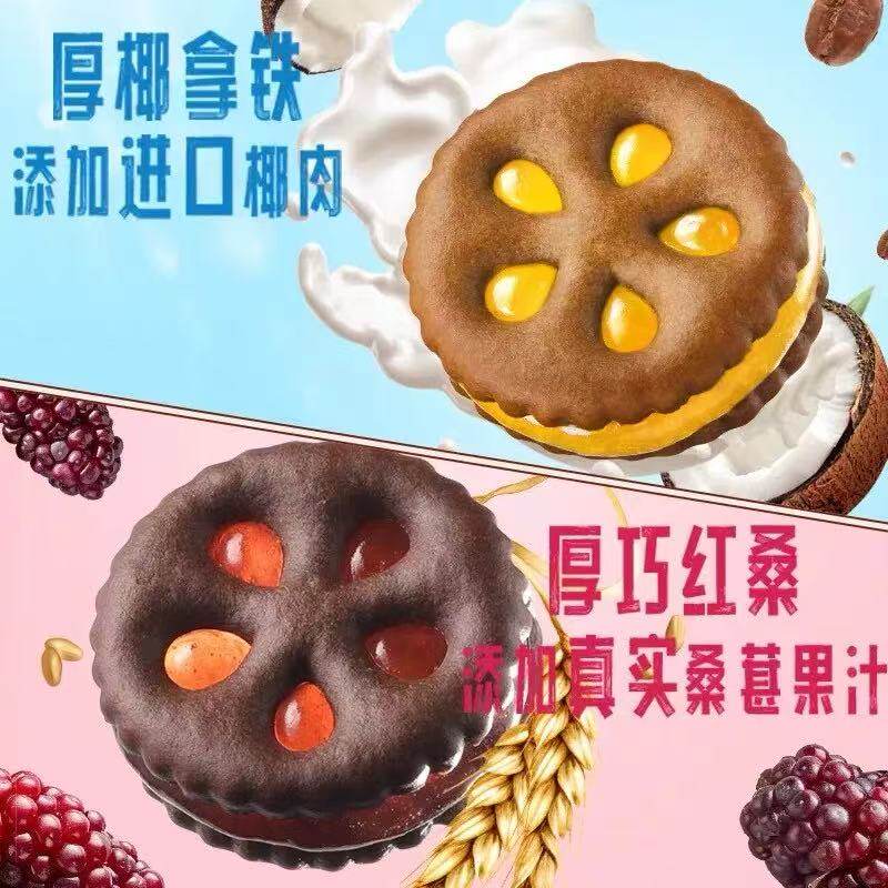 临期C20 嘉士利55g果乐果香厚巧红桑夹心饼干厚巧生椰咖啡巧克力