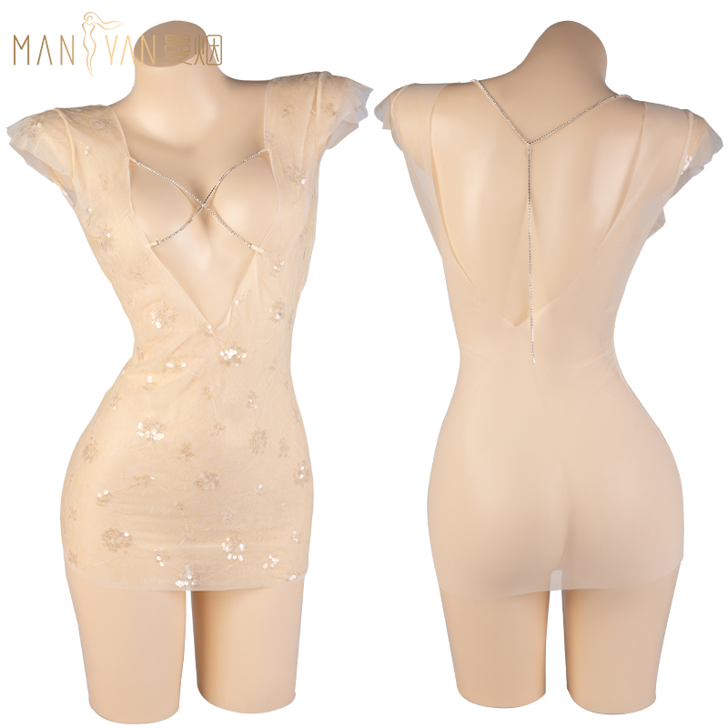 爱心大镂空开胸性感透视火辣闪亮夜店镂空碎花连衣裙纯欲约会睡裙