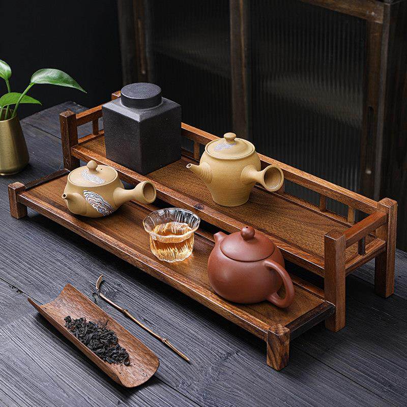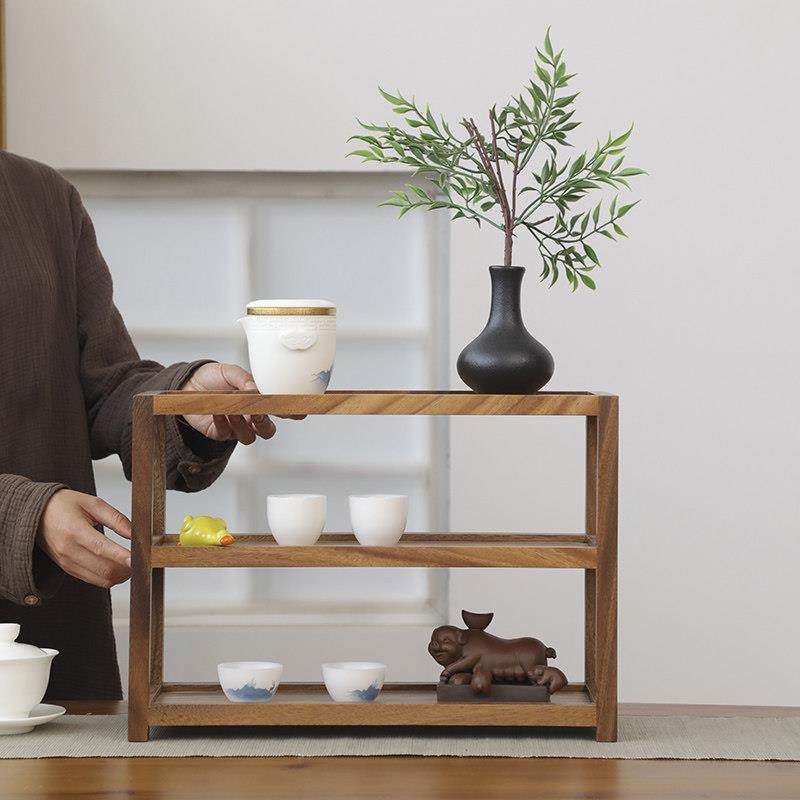 木质胡桃茶杯架子茶具茶壶紫砂壶收纳架中式多宝阁桌面小博古架子