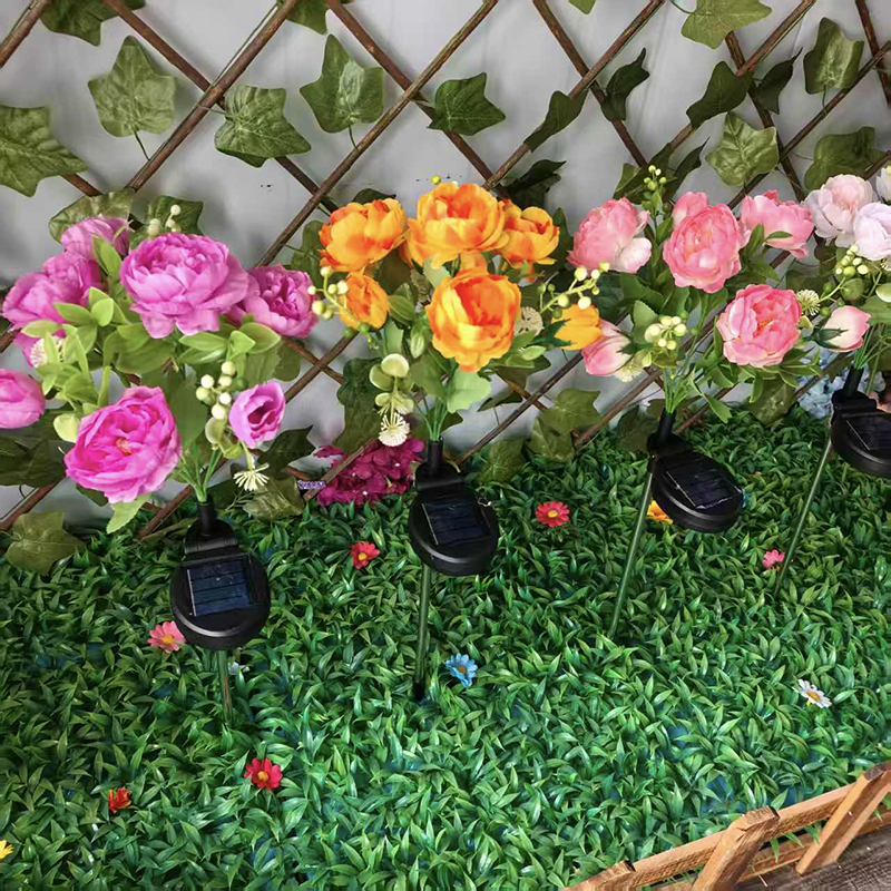 太阳能7头仿真牡丹花灯户外防水花园庭院草坪阳台别墅景观装饰灯