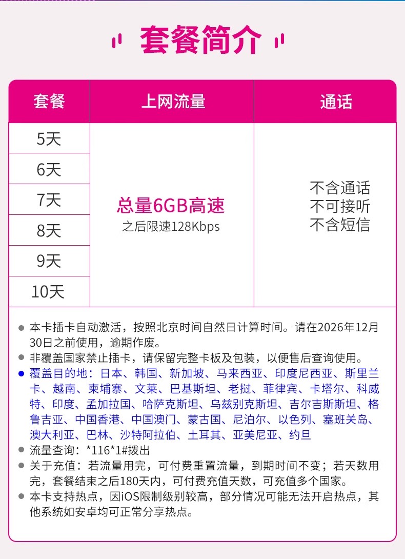 ZAIN约旦电话卡4G流量上网卡亚洲多国通用旅游手机SIM卡5/6/7/8天
