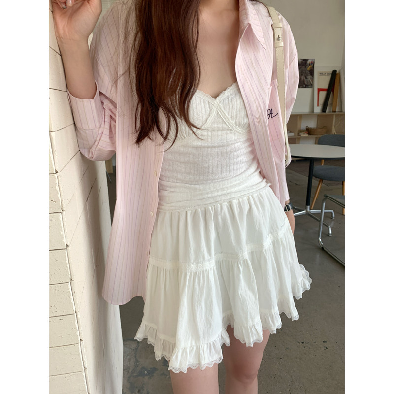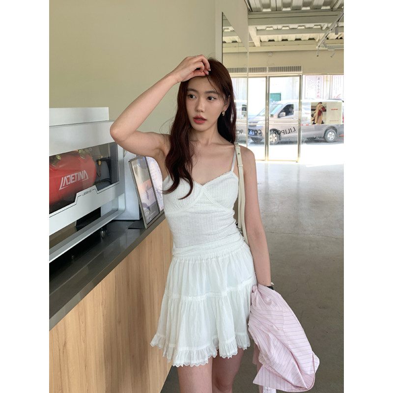 Halo Luu 白色芭蕾风短裙女夏季2025新款蓬蓬蛋糕裙花边a字半身裙