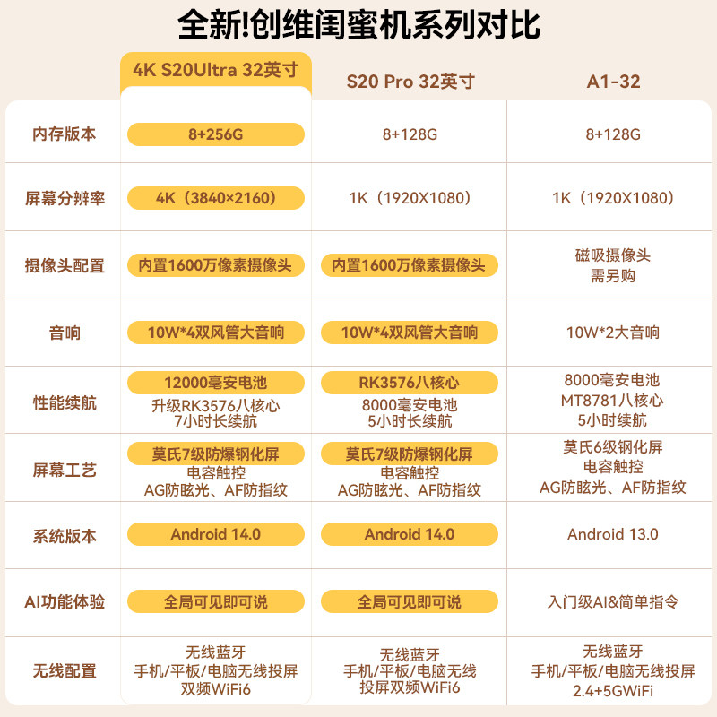 【国补20%】创维闺蜜机4K智慧屏32英寸S20Ultra智能办公平板电视电脑移动电视闺蜜机健身无线投屏AI语音