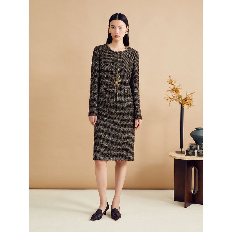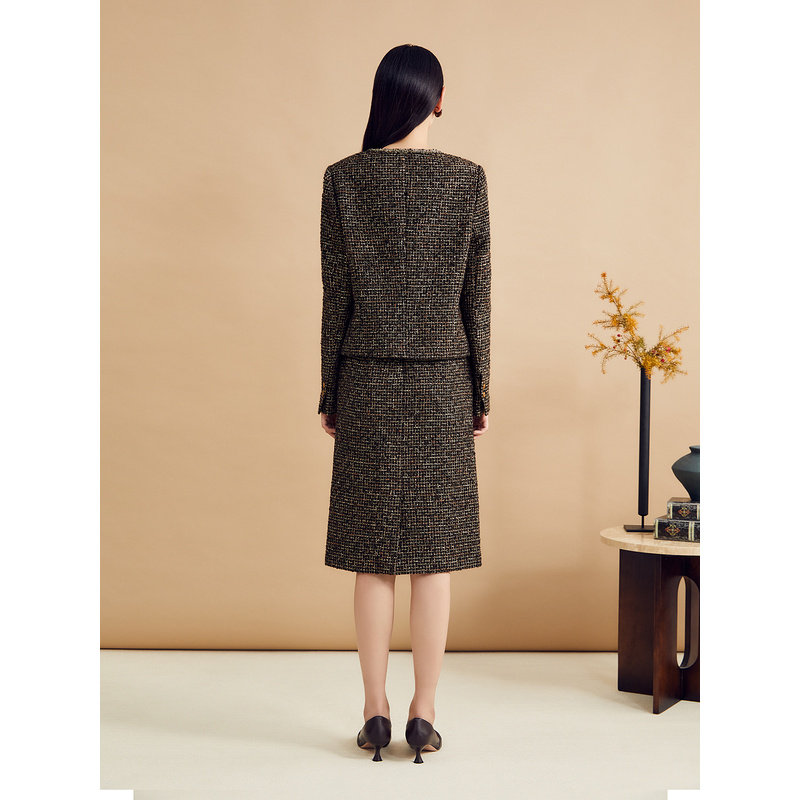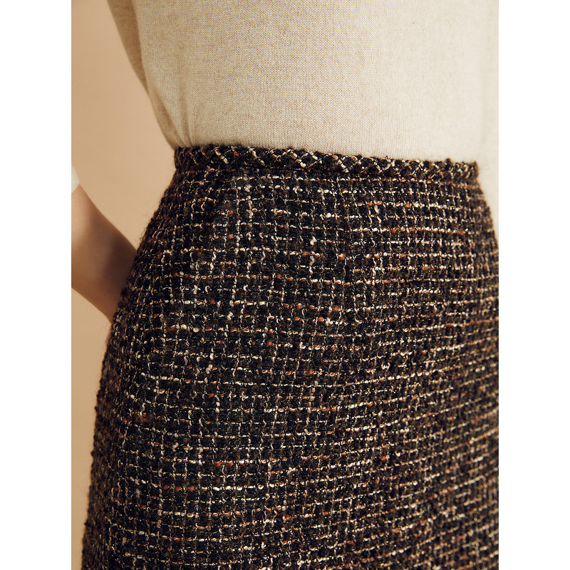 YINER音儿女装秋季羊毛法式优雅粗花呢高腰直筒半身裙