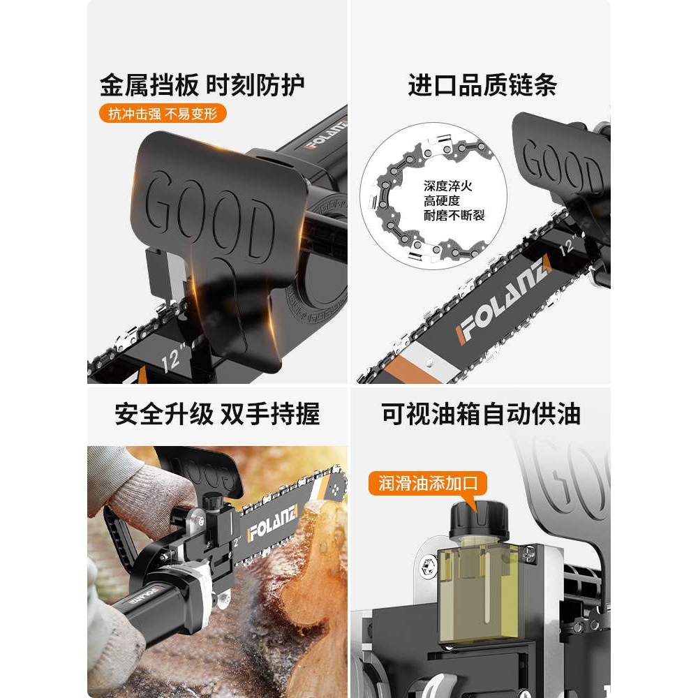 角磨机改装电链锯家用手持小型磨光机改电锯伐木锯木工链条锯神器