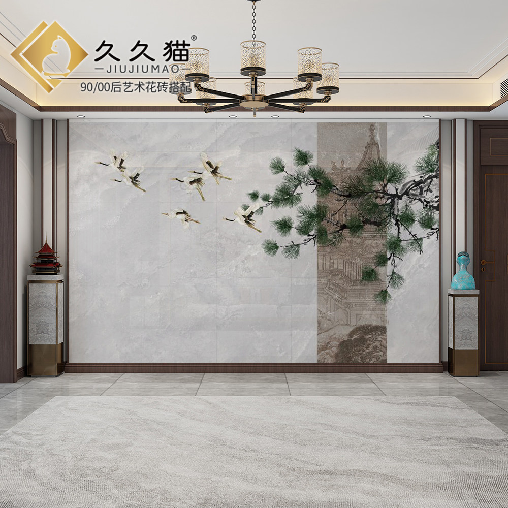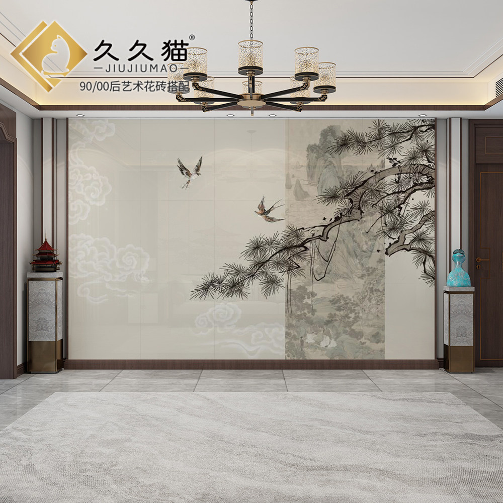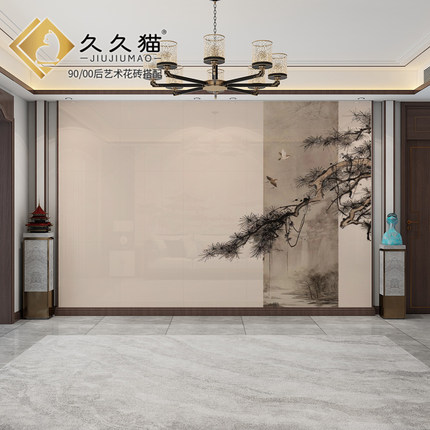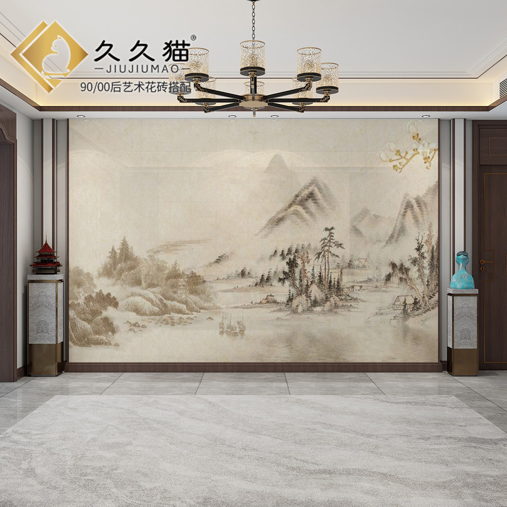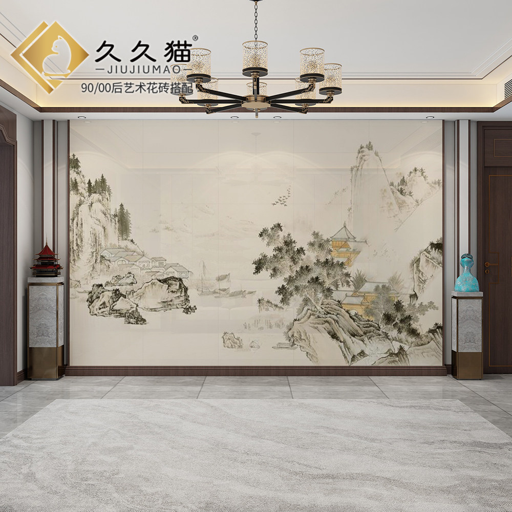 山水画中式风电视瓷砖背景墙客厅装饰高档大气定制微晶岩板瓷砖画