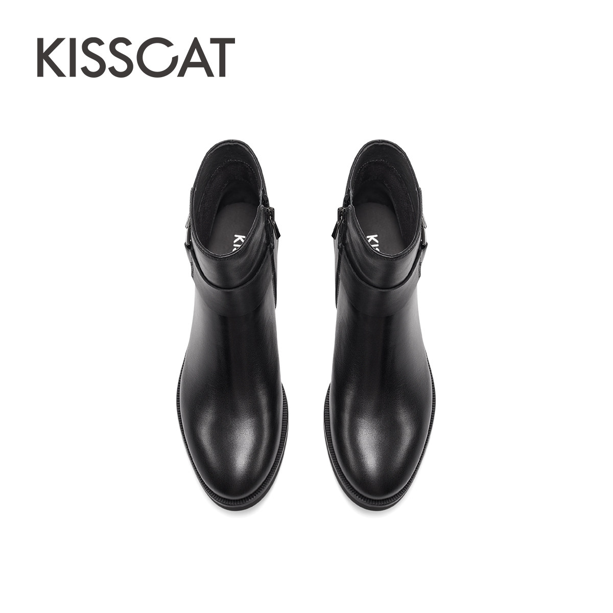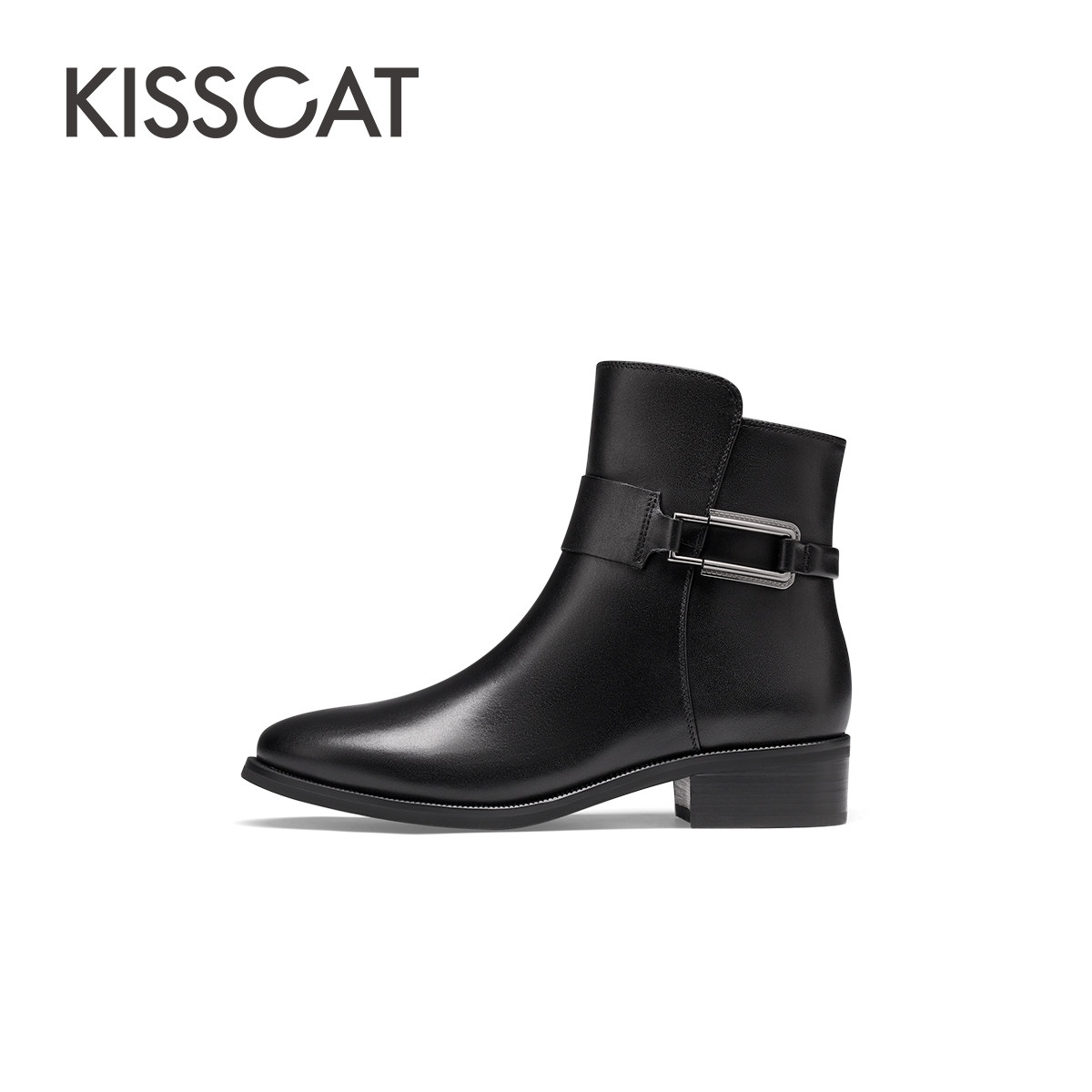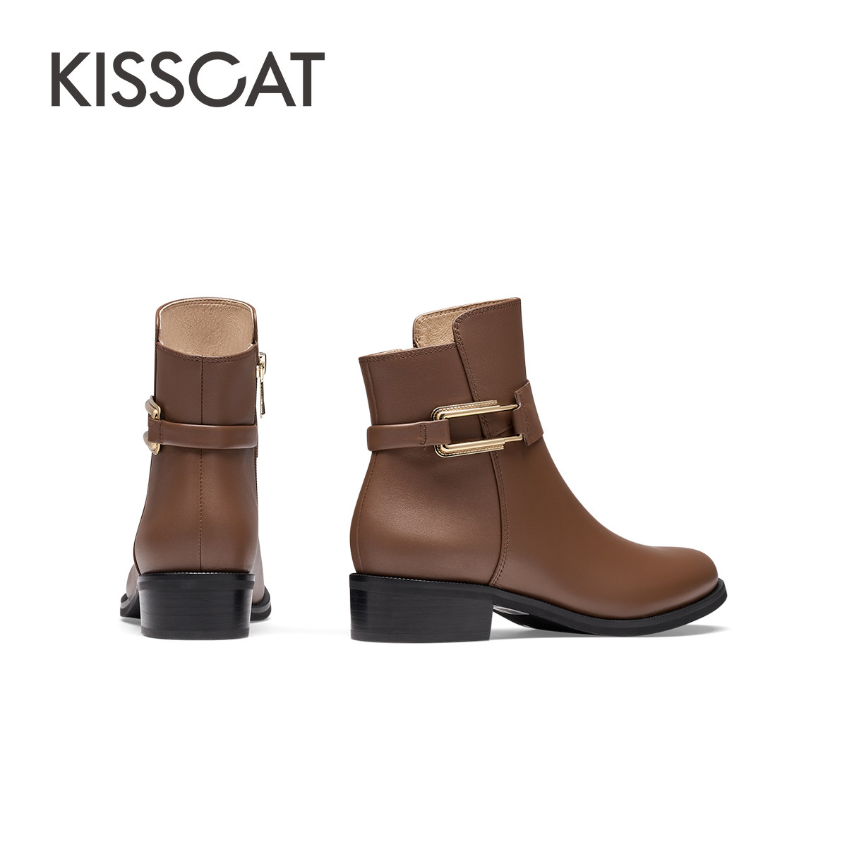 KISSCAT接吻猫秋季新款增高复古美拉德棕色短靴通勤真皮时装靴女