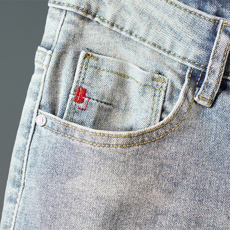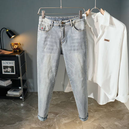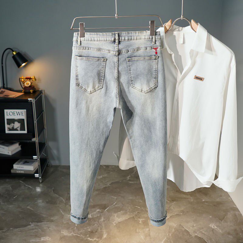 夏季薄9分牛仔裤男款潮流百搭修身小脚长裤简约浅色休闲九分裤子