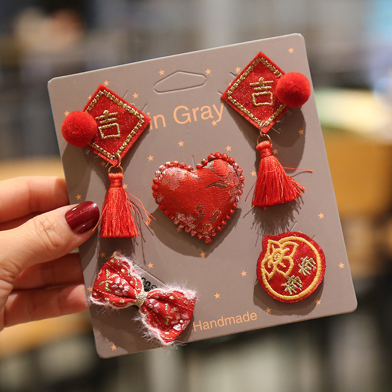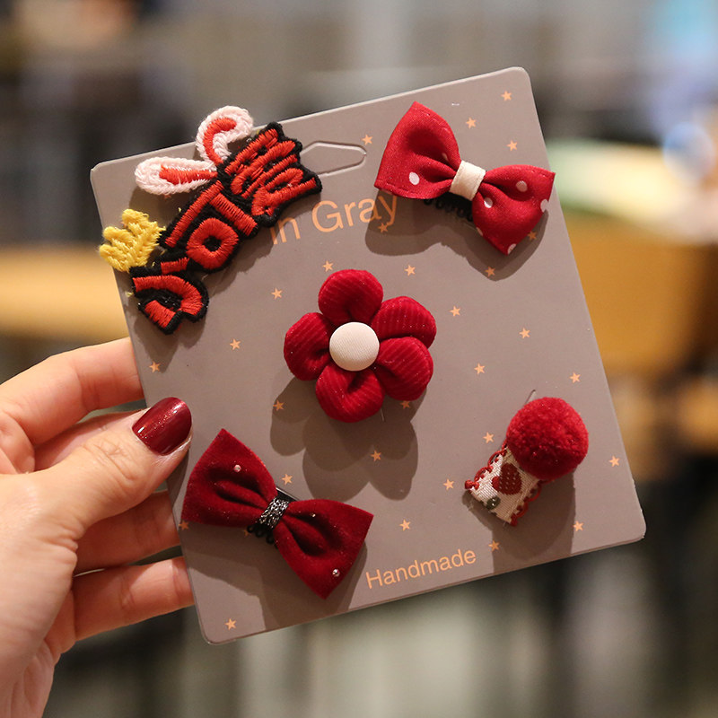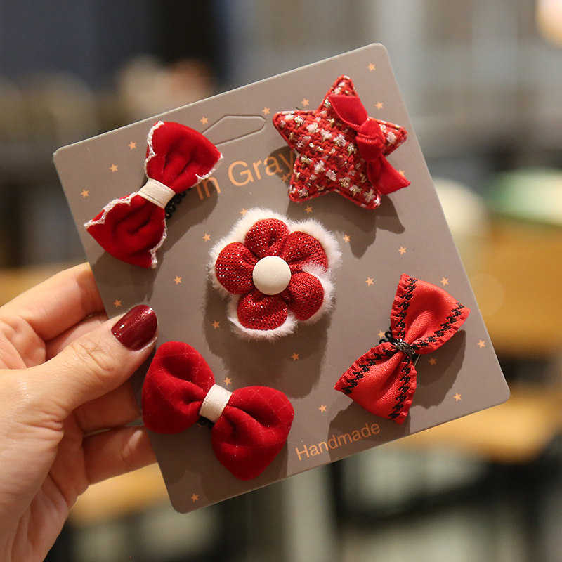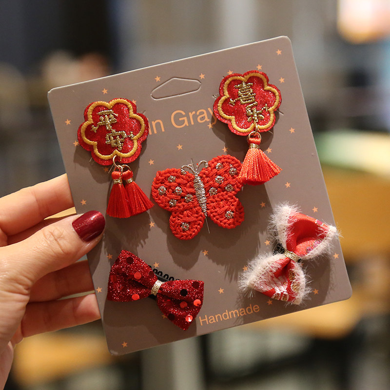 宝宝发夹红色蝴蝶结汗毛夹可爱婴幼儿可用发卡新年中国风女童头饰