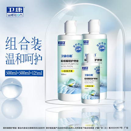 亮明隐形眼镜护理液新视清凉500x2+125ml卫康正品美瞳清洗药水