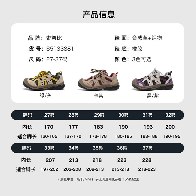 史努比童鞋男童运动鞋儿童户外登山鞋春秋季2025新款网面透气鞋子
