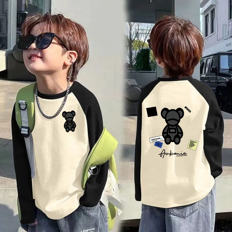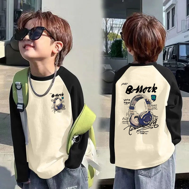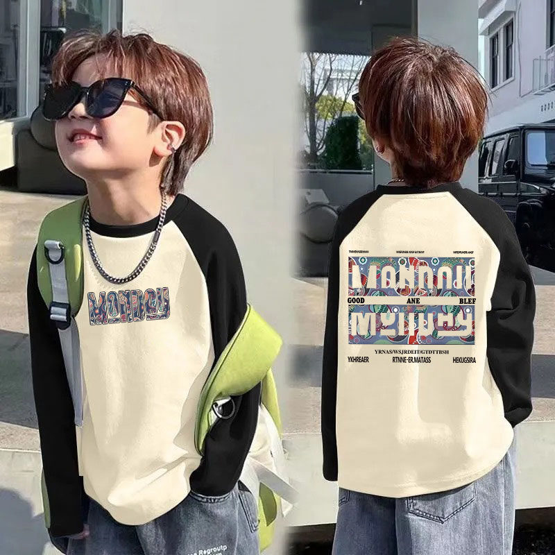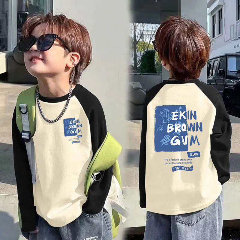 春秋男童打底衫帅气百搭儿童长袖T恤中大童拼接撞色宽松秋季上衣