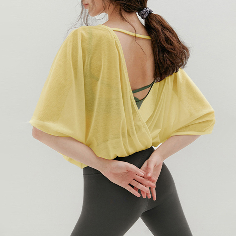 新款运动罩衫轻薄透气跑步防晒衣夏季天丝宽松短款露背速干瑜伽服