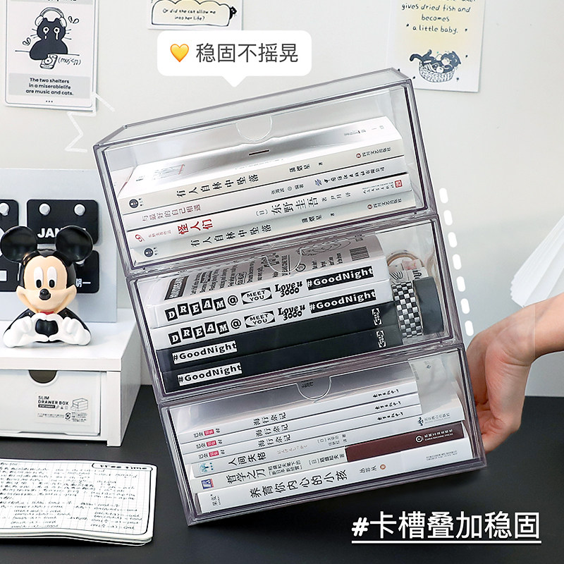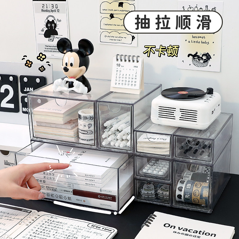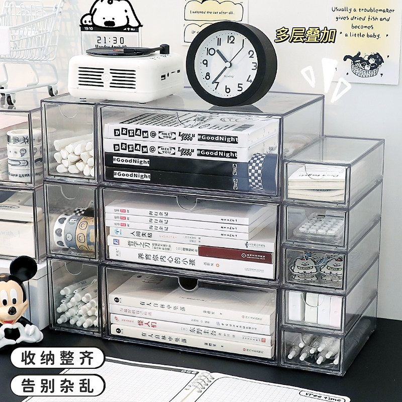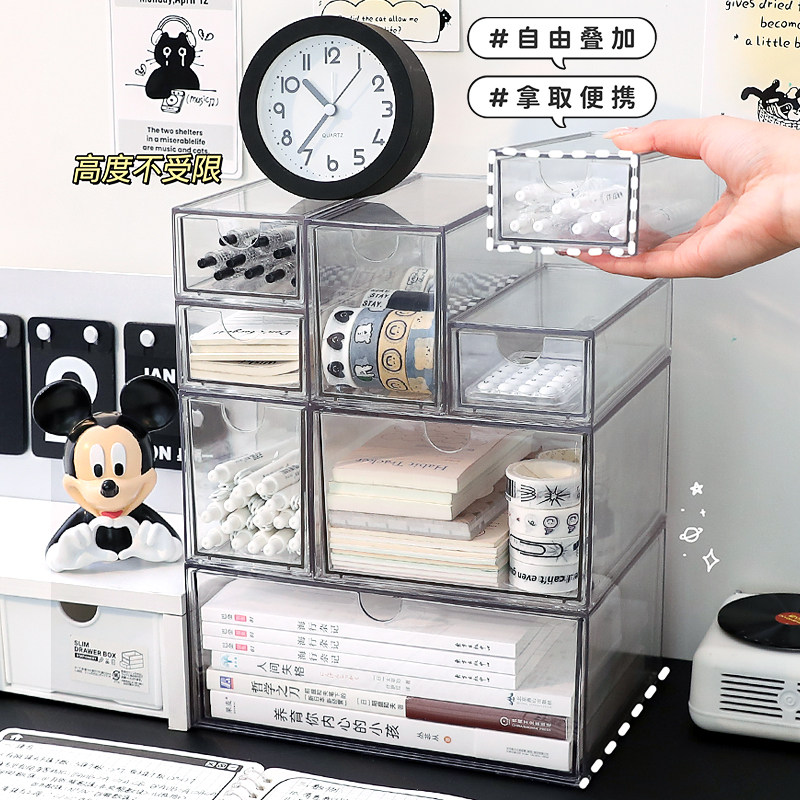 桌面抽屉收纳盒可叠加透明亚克力书桌杂物办公室多层文具置物架