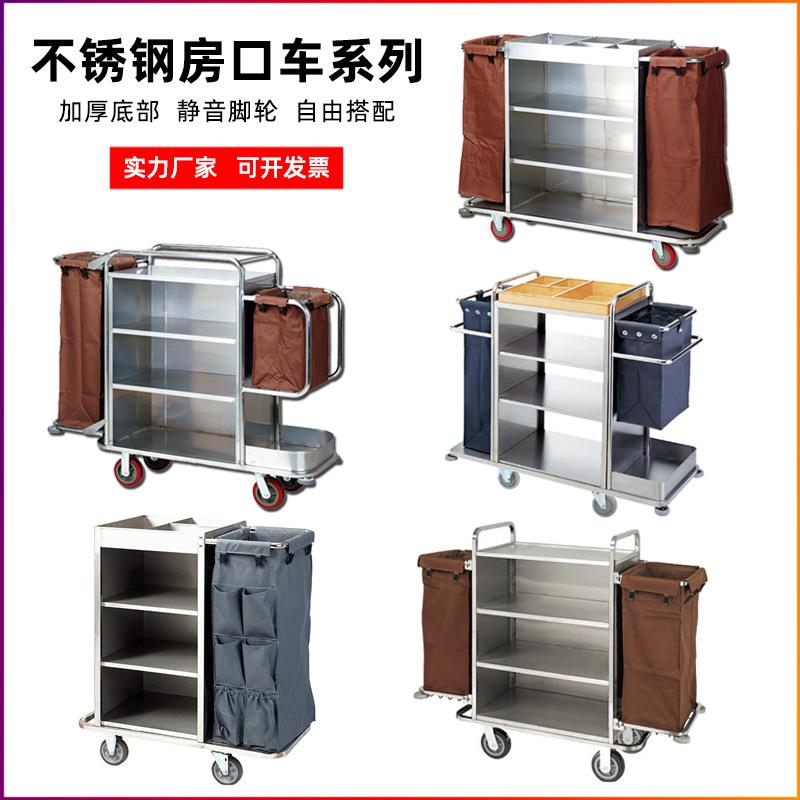 单边加厚不锈钢客房服务车酒店双边房口车多功能工作清洁车布草车