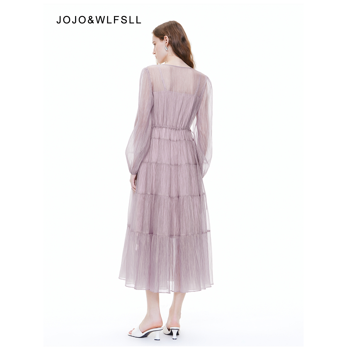 JOJO&WLFSLL女装法式V领连衣裙2025秋季新款度假长裙紫色长袖裙子