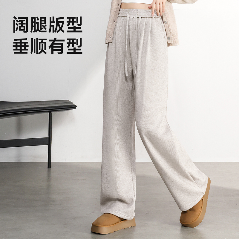 班尼路杏色加绒糯米裤女2025秋冬新款巨好看垂感直筒休闲阔腿裤H