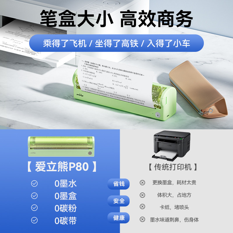 爱立熊A4打印机办公专用小型差旅连接手机迷你打印机合同文件文档高清无墨智能学习办公通用打印机碳带P80