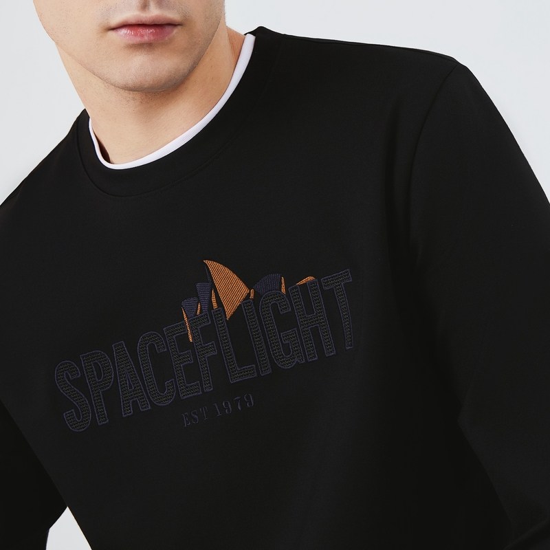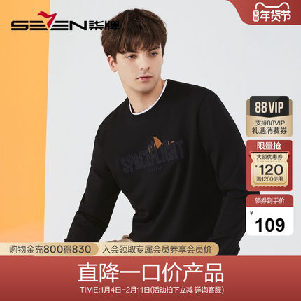 柒牌特价卫衣男士秋冬时尚休闲黑色百搭字母绣花圆领长袖上衣