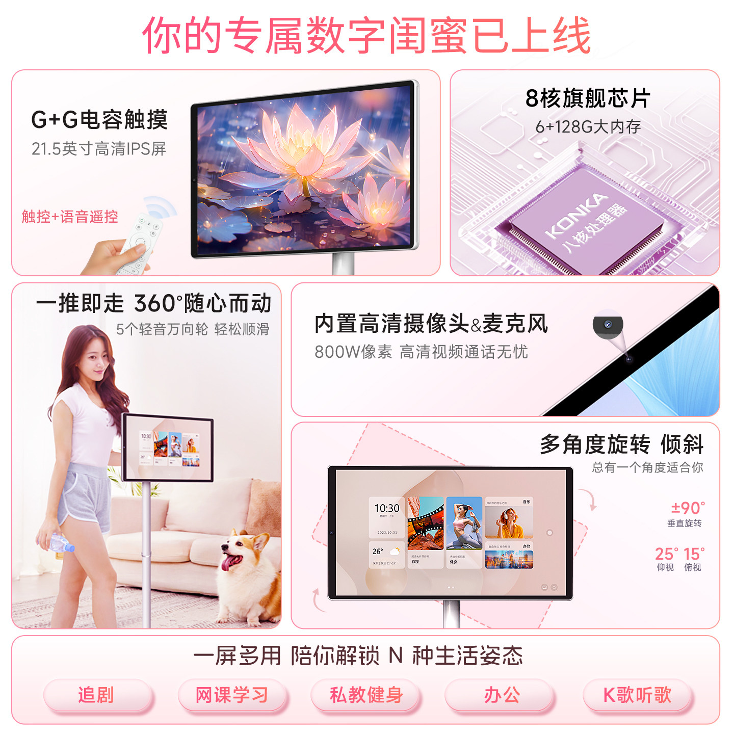 (KONKA)康佳闺蜜机智慧随心屏可移动电视一体机自由触控屏 可娱乐学习追剧健身过年春节送礼大平板 21.5英寸