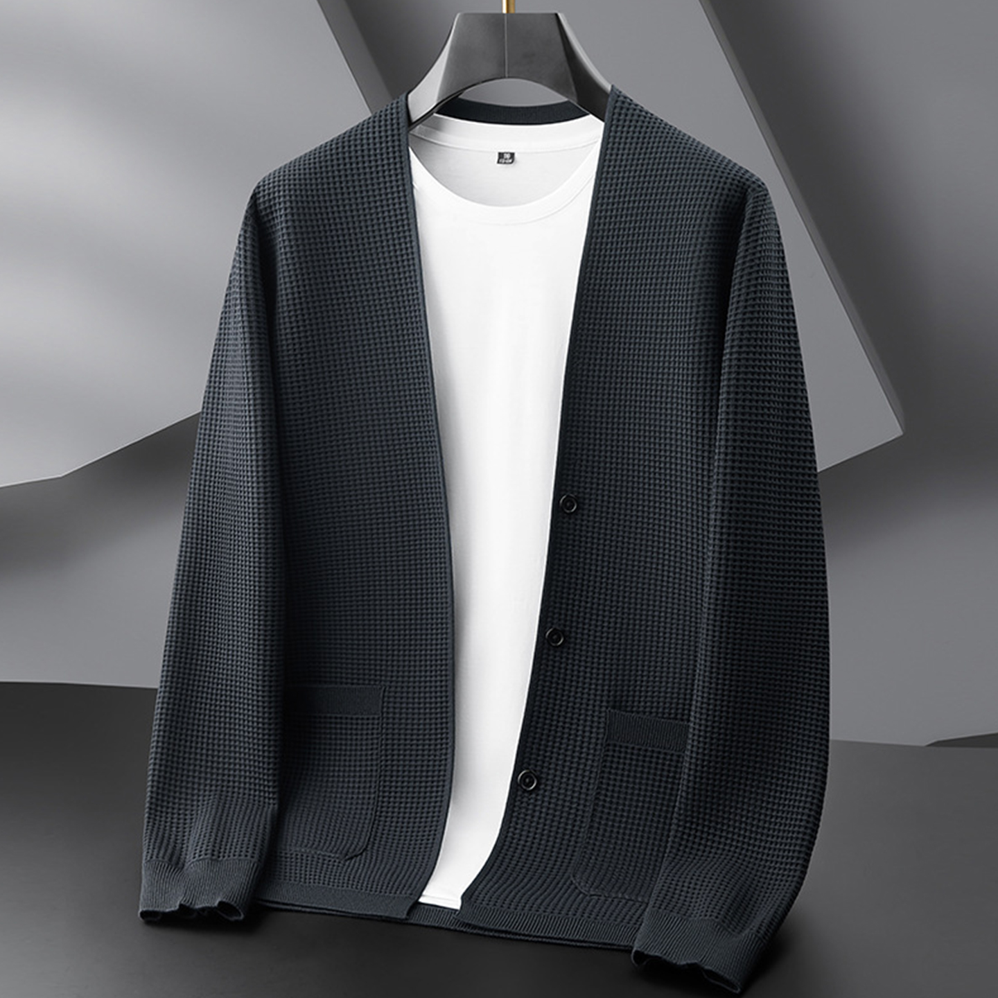 大码男士针织开衫外套春秋季新款中年爸爸装宽松保暖毛衣外搭上衣