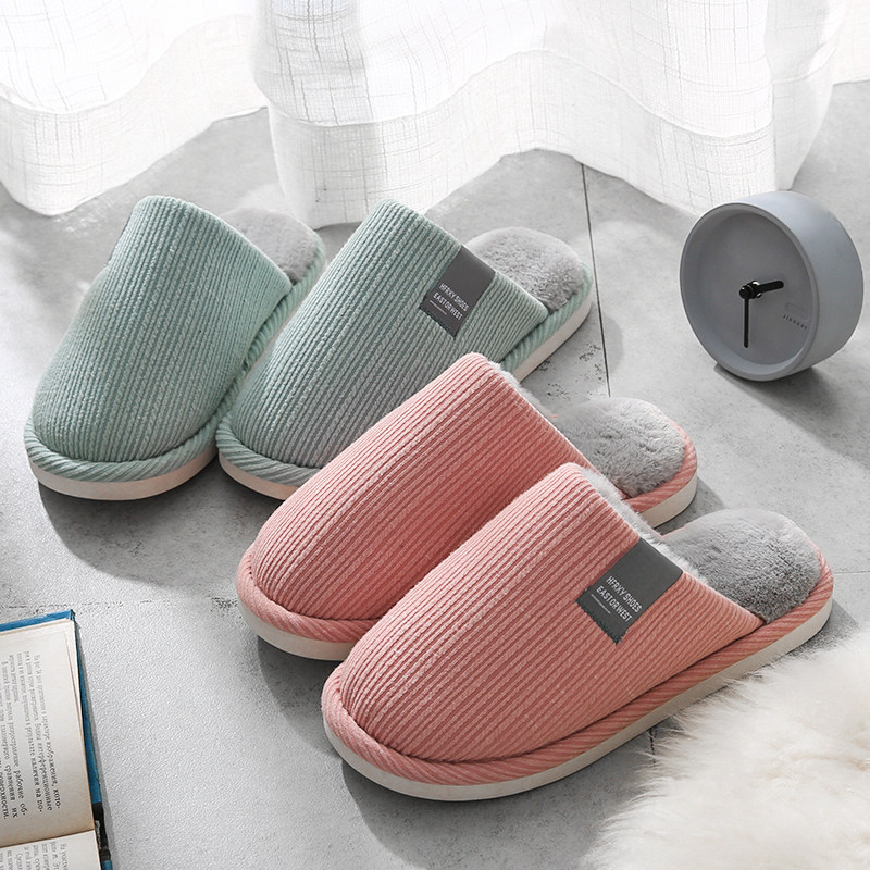 软底防滑加厚简约风地板棉拖鞋