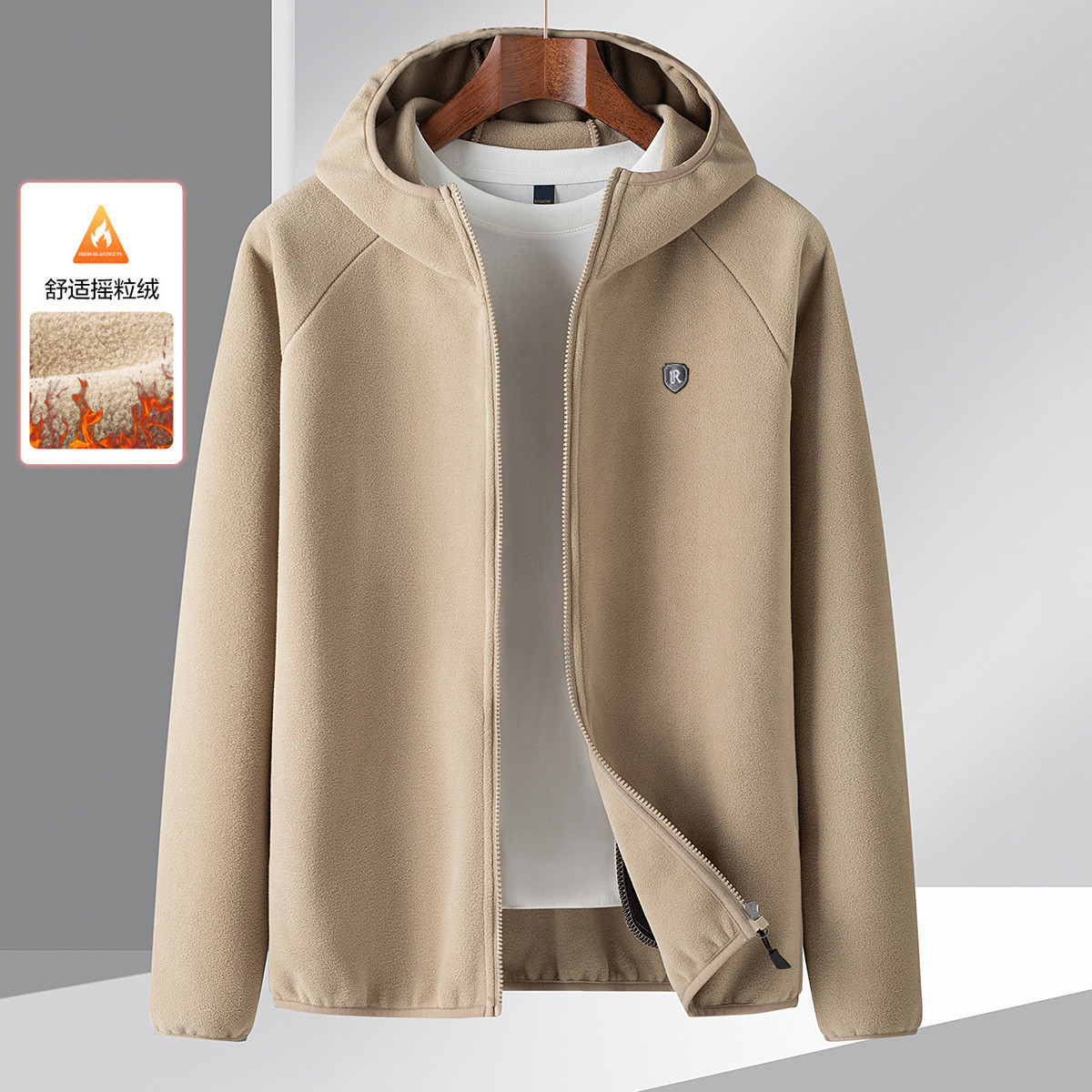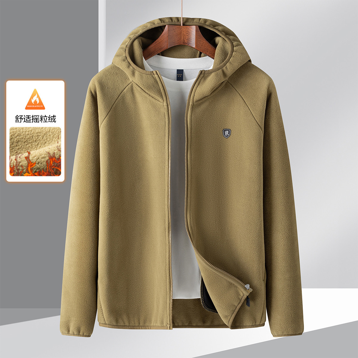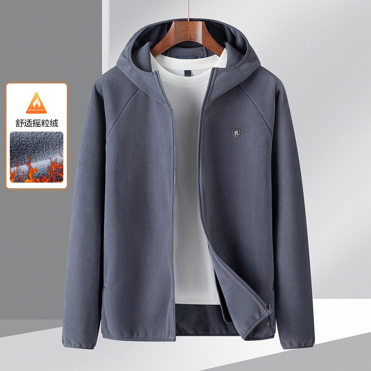 罗蒙男士外套摇粒绒春秋冬双面抓绒上衣休闲连帽运动卫衣夹克开衫