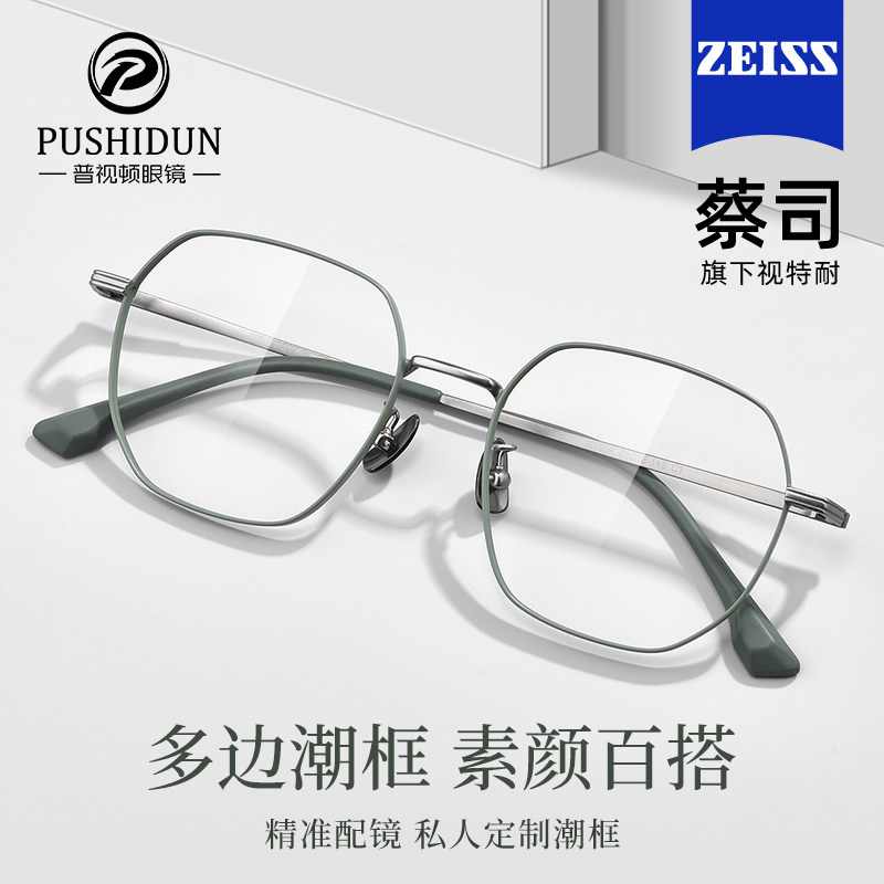 高级感超轻纯钛近视眼镜框女可配度数散光素颜多边形眼睛镜框架男