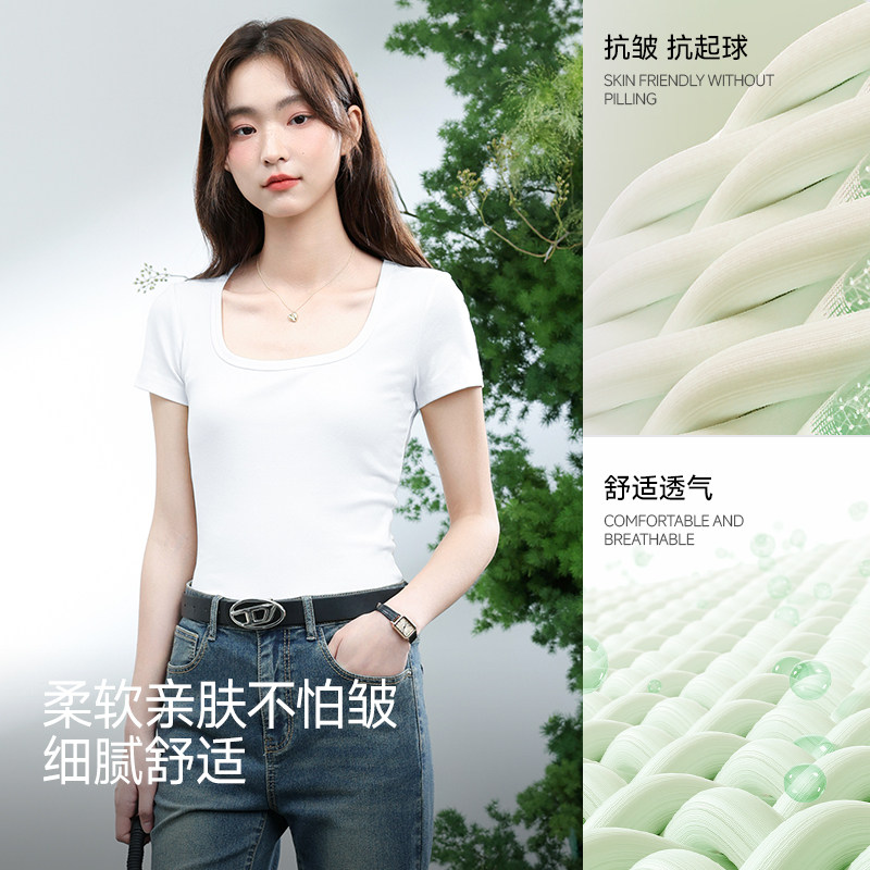 KCV真维斯红色方领短袖女T恤2026新款夏季本命年马年衣服女装上衣