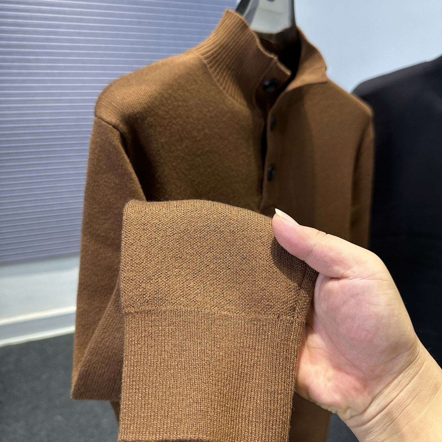 半高领毛衣男士高品质秋冬季新款纽扣立领纯色内搭休闲保暖针织衫