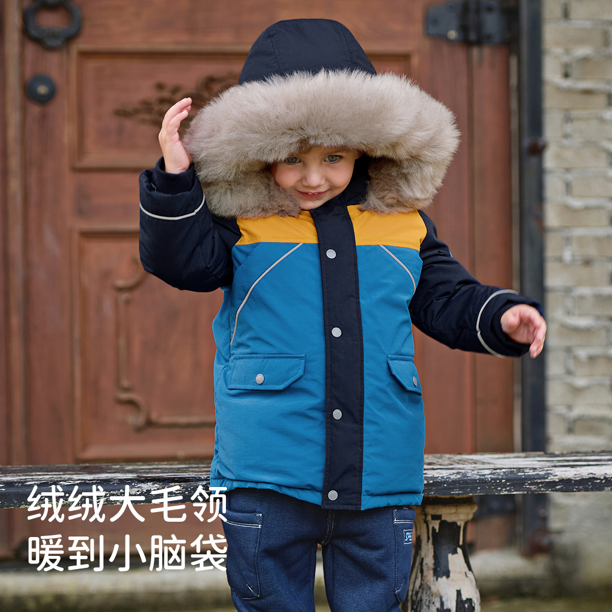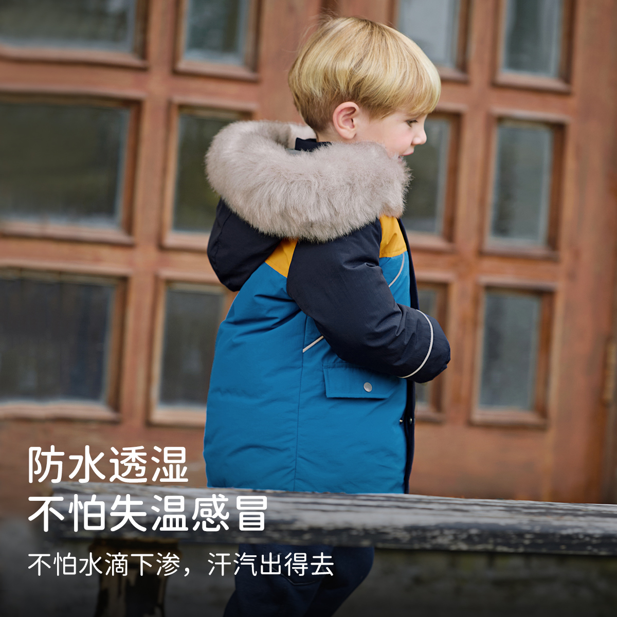 【清仓特价】戴维贝拉男童防水透湿羽绒服冬款儿童中长款外套上衣