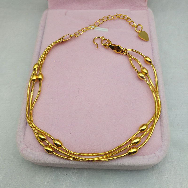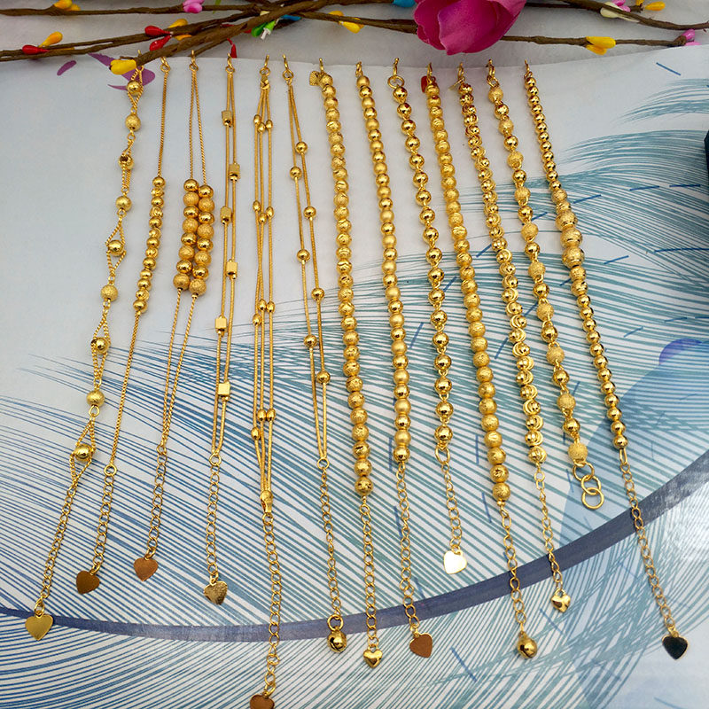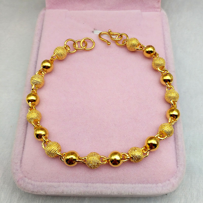 新款欧币镀黄金色手链女饰品婚庆镀24k转运珠沙金手链手环首饰女