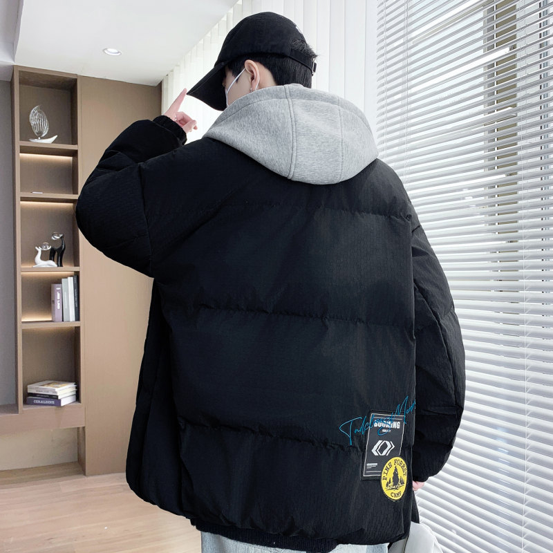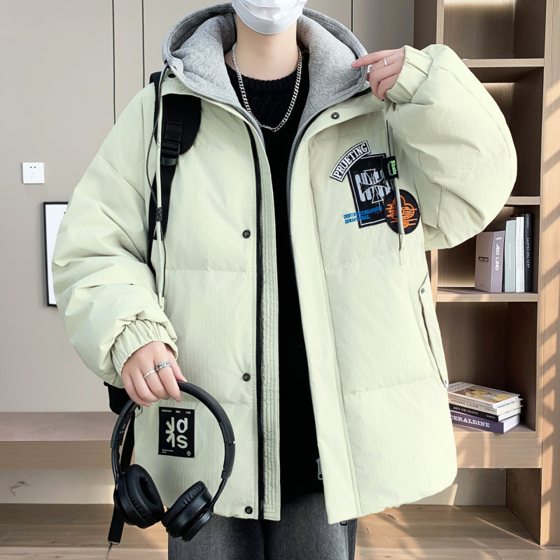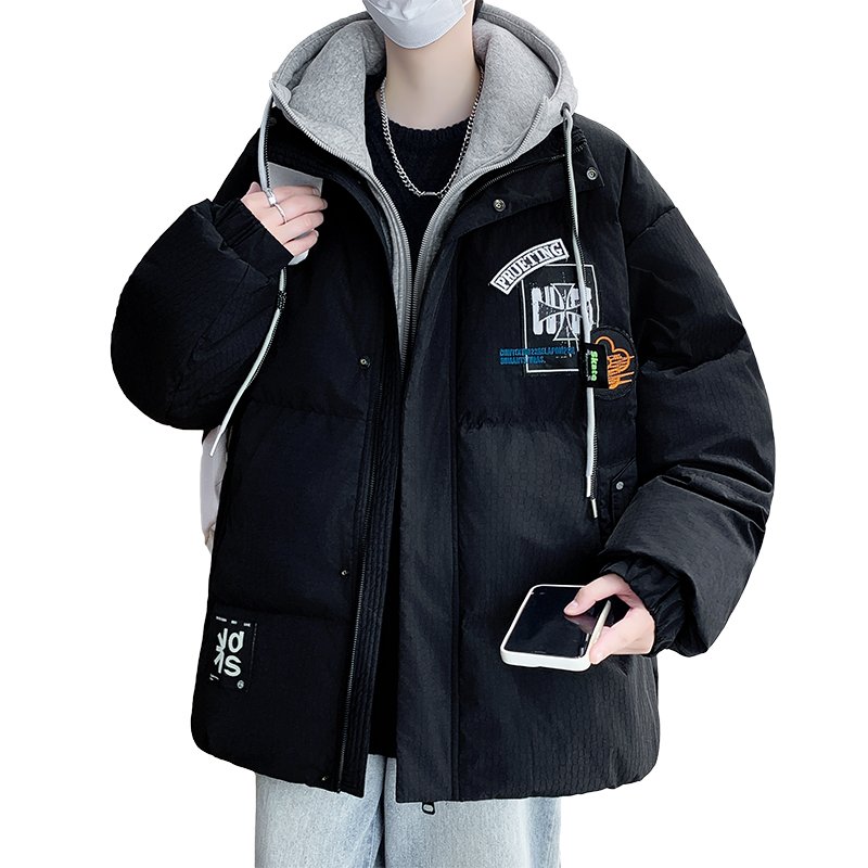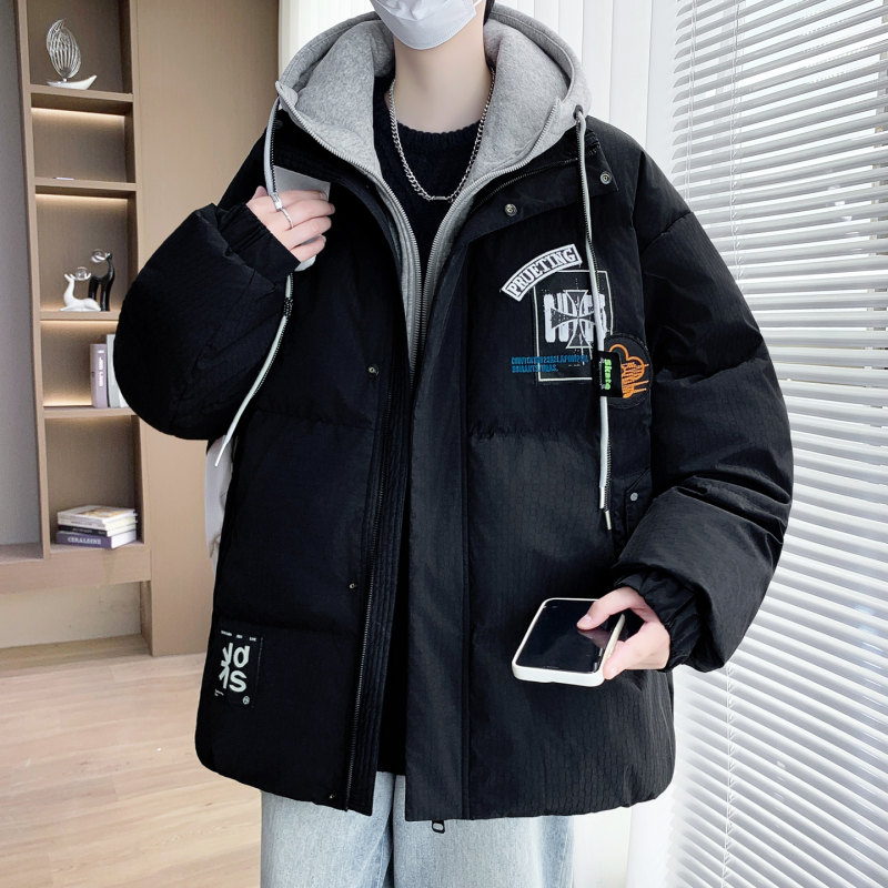 冬季新款潮牌美式假两件羽绒服男款加厚休闲宽松白鸭绒外套男以純